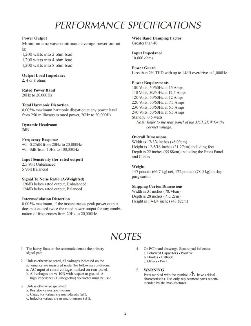 品MC1.2K/POWER AMPLIFIERSERIAL NO.YF1001 And AboveWATTS.012.121.2121201.2KW-40-30-20-10500DECIBELPOWER OUTPUTMETERMclnfoshPOWERWATTSREMOTEOFFMC1.2KW POWER AMPLIFIERCONTENTSPerformance Specifications............2Input Schematic and PCB........Notes..……2Capacitor Schematic and PCB....17-18RearMeter Schematic and PCB...19-22Section L0 cation.……..4Lamp Schematic and PCB............23-24Block Diagram…Light Schematic and PCB.....25Interconnection Diagram.....…7-8Power Guard Schematic and PCB............26Heatsink Schematic and PCB............9-10Parts List29-32Heatsink Slave Schematic and PCB.....................11-12Repacking Instruction.33Driver Schematic and PCB......13-15SERVICE MANUAL