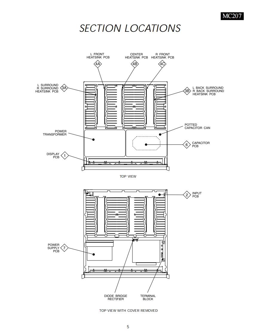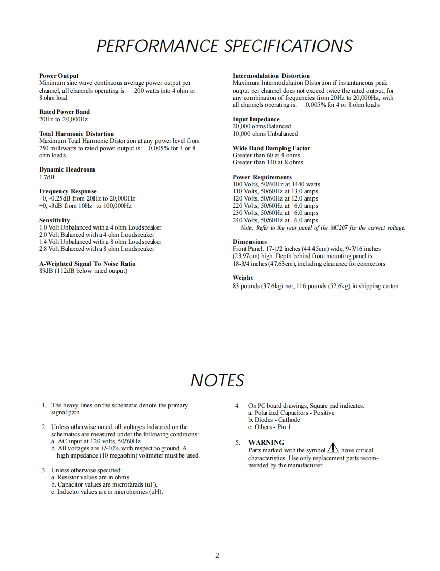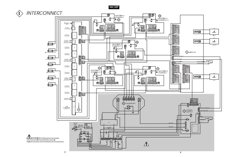 MC207POWER AMPLIFIER.02.2p202029040-3020黑哥29-4030·20-10e20-220-4030·20-10POWER QUTPUTPOWER QUTPUTPOWER QUTPUT1-LEFT FRONT4-CENTER7-RIOHT FRONTPOWER GUARD吕吕吕吕METER LIGHTSPOWERMclnfosh网CONTENTSPerformance SpecificationsHeatsink 2-Channel Schematic and PCB ............21-26Notes2Display Schematic and PCB..........29.323Capacitor Schematic and PCB......33Section L0 cation…Power Supply Schematic and PCB.....................34.35Bl0ckDi阳gram6Parts List.…36-42Interconnection Diagram ...................78Exploded Views and Parts Lists43.46Input Schematic and PCB..9.12Repacking Instruction.............47Heatsink 1-Channel Schematic and PCB ...........13-18SERVICE MANUAL