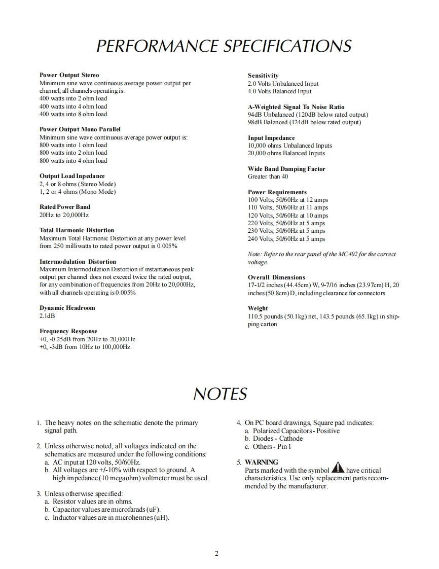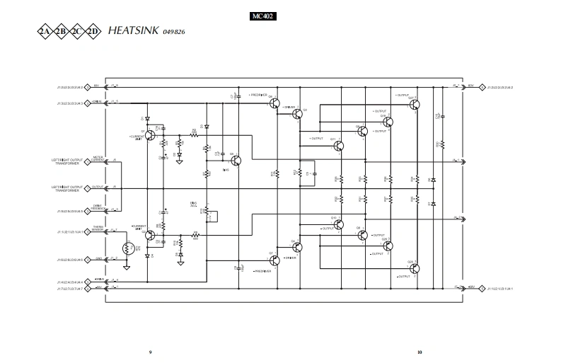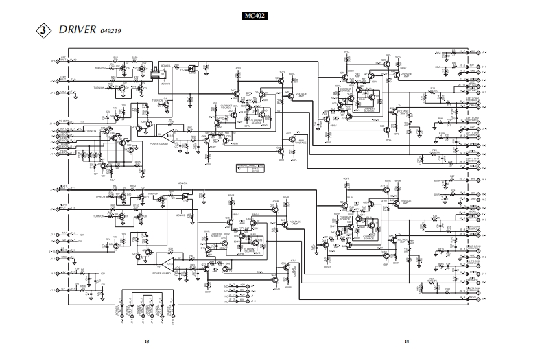 IIntoshMC402POWER AMPLIFIERPOWER GUARD40.40..404h40400'4.0.40。.404.03040020403024040020DPOWER OUTPUTPDWER SUTPUTMETERPOWERWATTSIclnfoshRENOTELIHTS DHOLDMC402POWER AMPLIFIERCONTENTSPerformance SpecificationsInput Schematic and PCB.17-18Capacitor Schematic and PCB......................19-20Rear Panel.…3Meter…21.25Secti0nL0Cati0n……………………Indicator Schematic and PCB…26Block Diagram..5-6Meter LED Schematic and PCB...........27-28Interconnection Diagram.8Parts List…27-30Heatsink Schematic and PCB9.12Exploded View and Parts List31-36Driver Schematic and PCB..13-16Repacking Instructions ..............……37SERVICE MANUAL