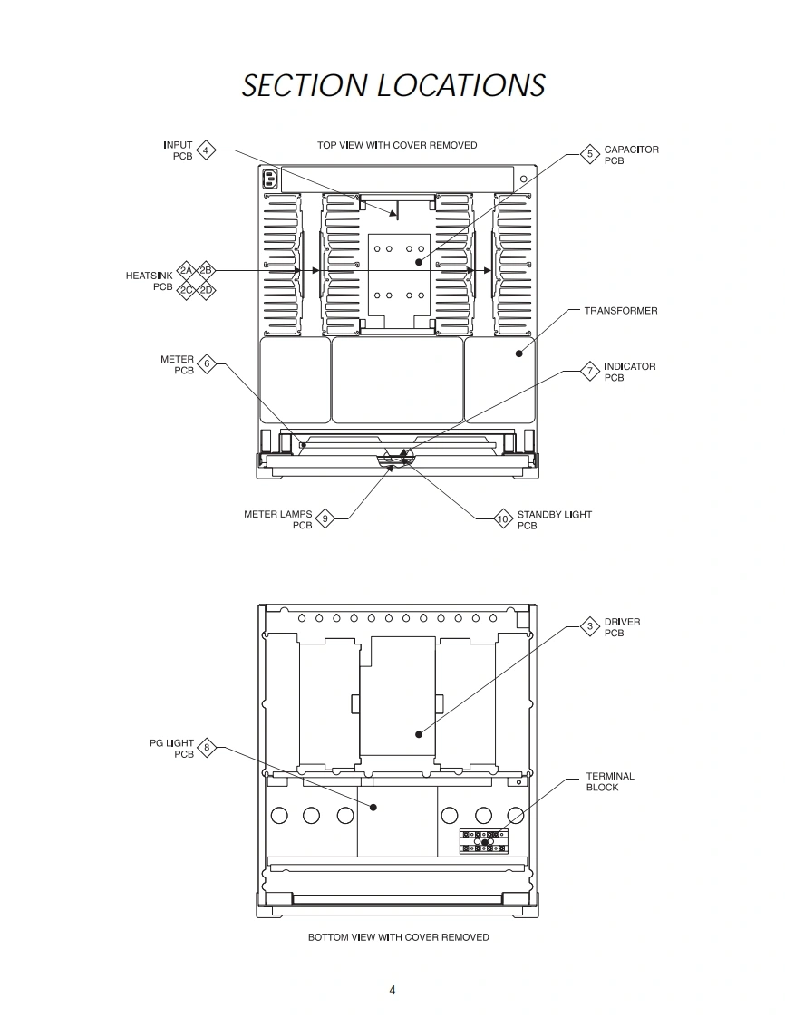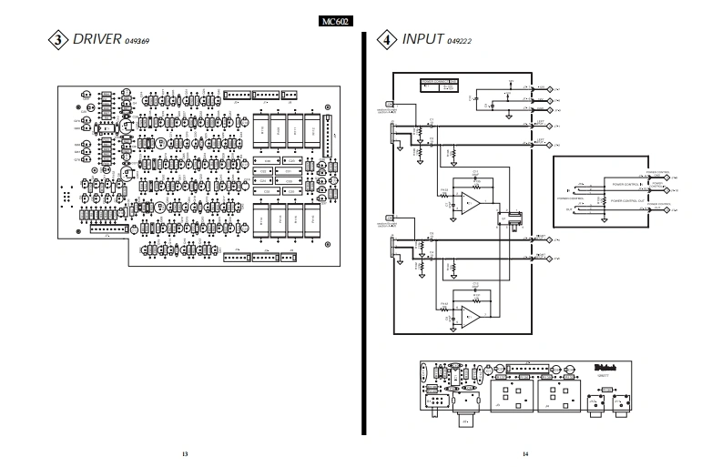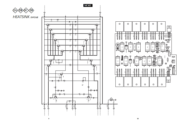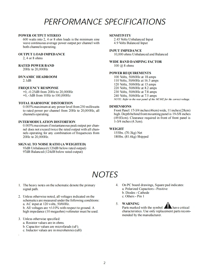 MC602POWER AMPLIFIERPOWER GUARDPOWER GUA有D6.0.m60。.606.06060096.0n60m.606.g60600f95040-30D-1050403020-10POWER OUTPUTPOWER QUTPUTMETERWATTSIltInfoshPOWERREMOTELIGHTSOFFMC602 POWER AMPLIFIERCONTENTSPerformance Specifications..........2Capacitor Schematic and PCB.15Notes.......2Meter Schematic and PCB......17.19Rear Panel.……3Indicator Schematic and PCB0Section Location4PG Light Schematic and PCB......21-22Block Diagram....56Meter Lamps Schematic and PCB21.22Interconnection Diagram ....7.8Standby Light Schematic and PCB...21-22Heatsink Schematic and PCB.910Parts List........23.24Driver Schematic and PCB ..............................11-13Exploded View and Parts List..25.28Input Schematic and PCB..14Repacking Instructions..29IclnfoshSERVICE MANUAL