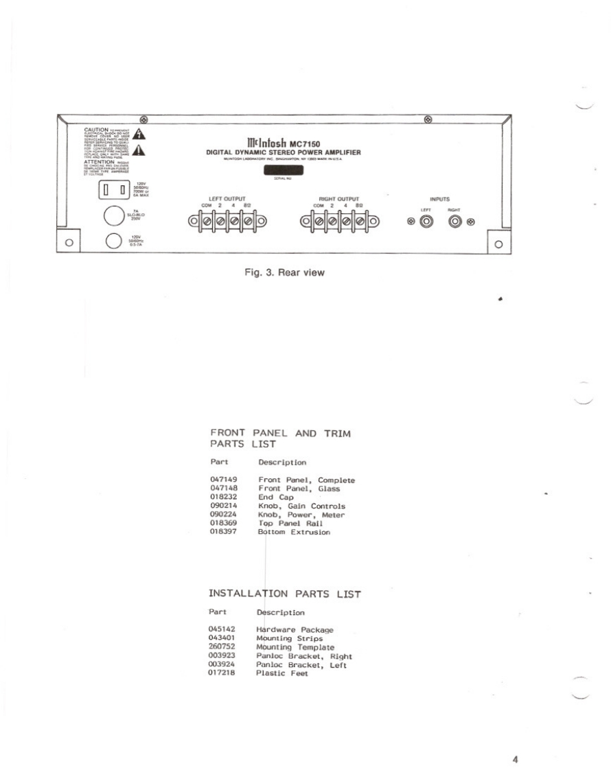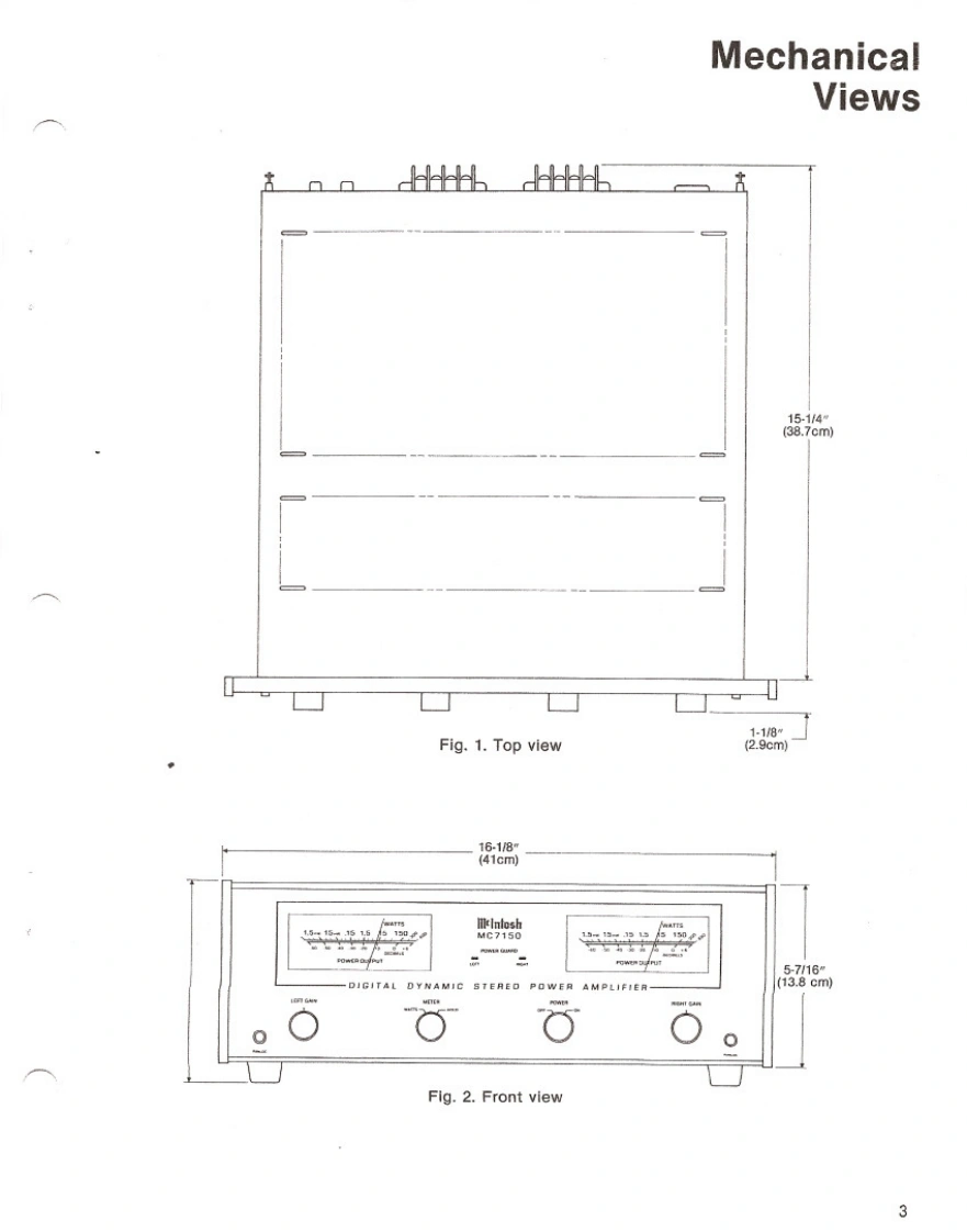 MC7150STEREO POWER AMPLIFIERIcIntoshWATTS1515=151.5151500MC71501.5m15.151.5A5150POWERDIGITAL DYNAMIC STEREO POWER AMPLIFIERLEFT GAINRGHT GAINCONTENTSPerformanceSpecifications..............................2Notes.....Mechanical Views3-4Front Panel and Trim Parts List4Installation Parts List...…Block Diagram....,…5-6Section Locations ......................................Section 1-Interconnection Diagram ....................7-9Section2-Power Supply/Meter....-..·-····10-15Section 3-Amplifier ................................16-20Repacking Instructions.................................21ItInlosh service Manual