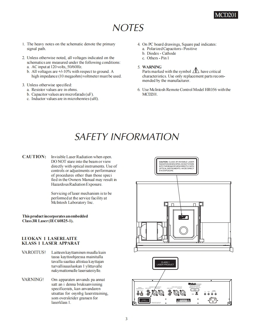 hMCD201SACD /CD PLAYERSERIAL NO.XD1001 And AboveTRACK NEMtlnfoshMCD201 SACD/CD PLAYER4【A0制412CONTENTSPerformance SpecificationsMain Schematic and PCB..9-16Notes……………Display Schematic and PCB.19-22Safety Information3Control23Rear Panel............5Headphone.……………………..25Section LocationParts List.………….2730Block Diagram6Exploded View and Parts List.....31-33Interconnection Diagram-8Repacking Instructions ...................35SERVICE MANUALSerial Number XD1001 And Above