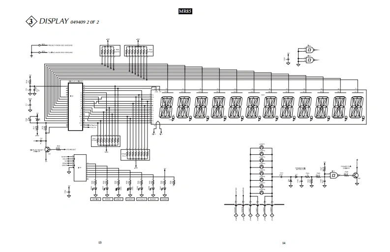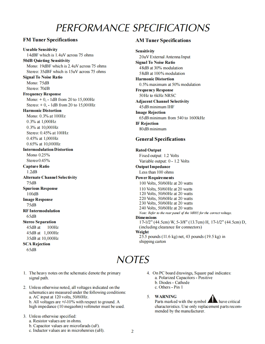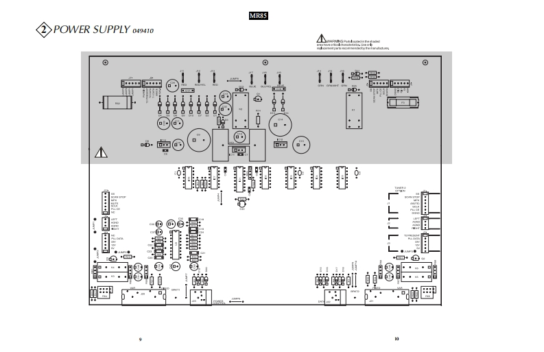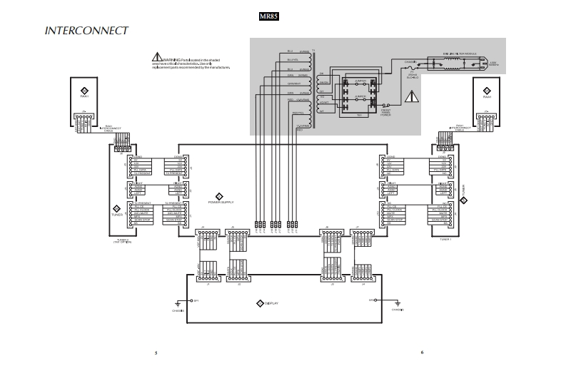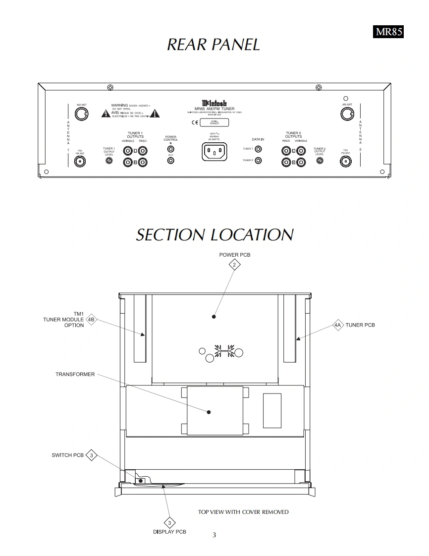 MR85AM/FM TUNERINCLUDING TM1 TUNER MODULE OPTIONMclntoshMR85 AM/FM TUNER6105.7 FM6CONTENTSPerformance Specifications.、3Display Schematic and PCB..11-16Notes.....2Tuner Schematic and PCB.............17-19Rear Panel.……RAA1 Schematic and PCB..............20Section Location ...…3Parts List.....21-22Bl0 ck Diagram.……………Exploded View and Parts List..24-26Interconnection Diagram5-6Repacking Instructions27Power Supply Schematic and PCB..................7-10IclntoshSERVICE MANUAL