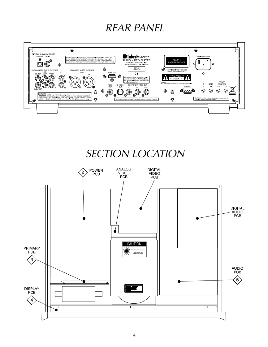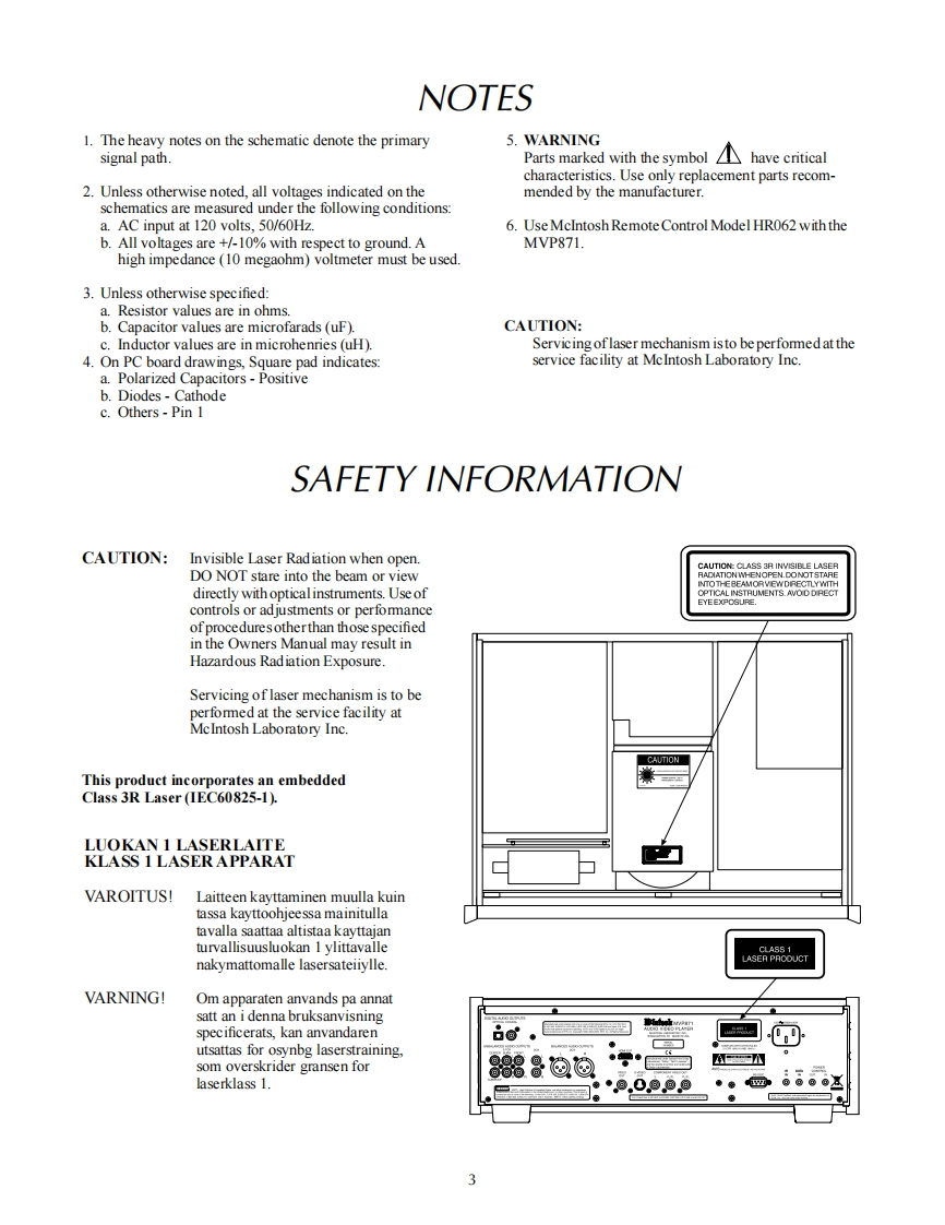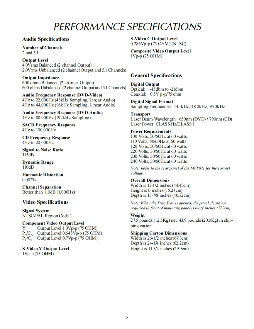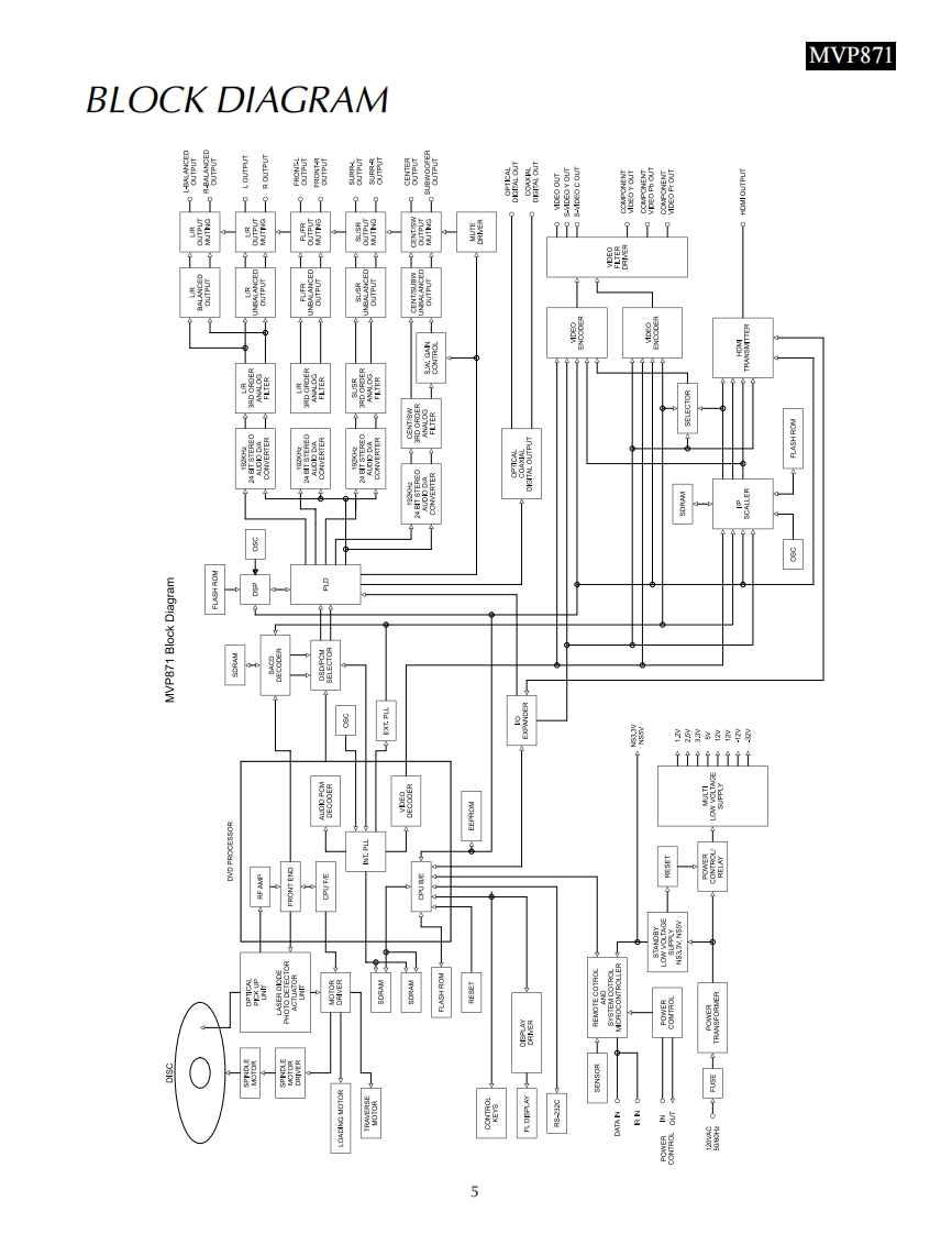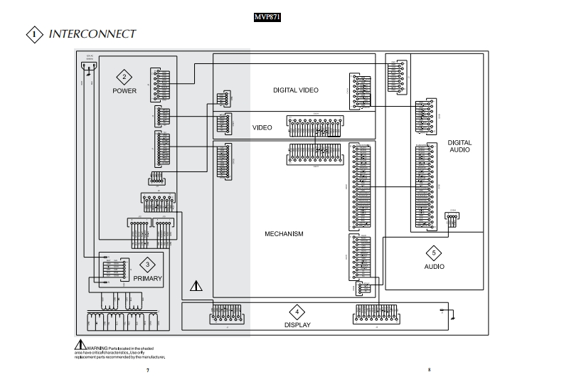 MVP871AUDIO VIDEO PLAYERSERIAL NO.XS1001 And AboveIclnfoshMVP871 AUDIO VIDEO PLAYERi“:ii架限●垫画8c▣HomI Orv网CONTENTSPerformance Specifications...Power Schematic and PCB.9.12Notes.2Primary Schematic and PCB..13-14Rear Panel....3Display Schematic and PCB.15.18Section Location.....3Audio Schematic and PCB...19-28Block Diagram......4Parts List.31-37Interconnection Diagram......................7-8Repacking Instruction......………39SERVICE MANUALSerial Number XS1001 And Above
