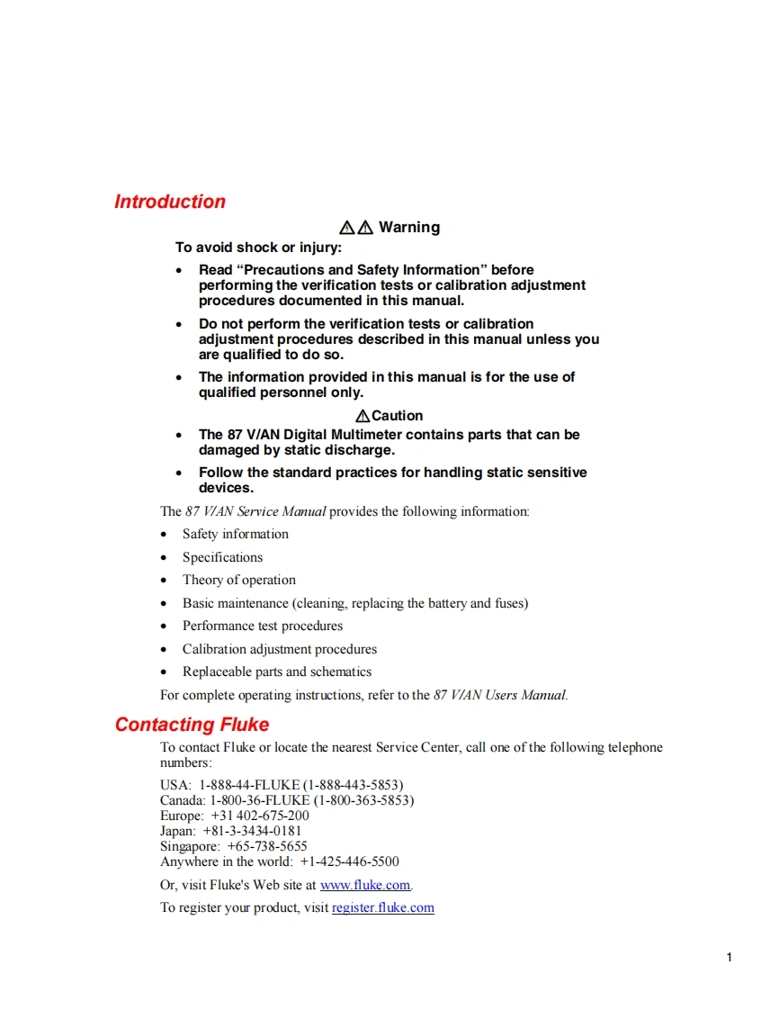 =LUKE。87 V/ANDigital MultimeterService ManualLimited permission for the U.S.Government to reproduce FlukeItem #2153596 is provided pursuant to FAR 52.227.14 Alt.Il.PN2153596July 20042004 Fluke Corporation,All rights reserved.Printed in USAAll product names are trademarks of their respective companies