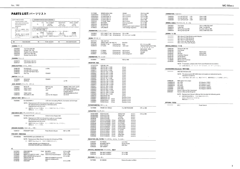W8.1991MC-50MkDMC5▣MKISERVICE NOTESMIC▣C▣MP▣SEHFirst EditionSPECIFICATIONS/仕禄+-+-+=11m1mtM2DDt4224D13M0别4t×10HN623两2五图TABLE OF CONTENTS目次PageAACA山p4ar.20ncSPECIFICATIONS仕样(h间LOCATION OF CONTROLS.IN THRUL OUTI,OUTR(羊配笔回量T8TGpEX00 ED VIEW---分解回=44…2PUNOH INIDUT4+44=++++-0军军W0有得BLOCK DIAG月IEIIEEEIIESIIEELI-7口y7国2M线TcW线0UmUT--=---mmaW是Ep/3KdOwsars Manudl BatTAPE STNCIN.-.1tP9.4C0NFG月ATl0区路解眼3特#=07TEnglah IPa=Ma.260555411=30m-==………-=一一-R址h02OUTTEST PROGRAM........5承Ge时IDENTIFYING VERSION NUMBER7MAIN BOARDMAIN BOARD…8,951“X13w了其1T4量LlxpM.LOCATION OF CONTROLS/バ礻L配置☒22a0501-250YK21-0219 lduall13449720113429642X4p13449253413449625lEA-D2025*Knob a-DIAL11502949422485106LED Cover(132788g80©©©⊙©0o@©0122025782×15psPCE OAUFIINO S-KEYTOP MXIH BLK2242538的Xpcw串ChasaisDek Drhee UntCord hook22815750Q S-KEYTOP LXIH BLKF2354 1317F1JR)223657381RXOBK12A 10KB X 222495353I×8pea112409295941249175引YKB2150121364914×2p136711)Roland1709t07Printed in Japan (APHOI ICR)1