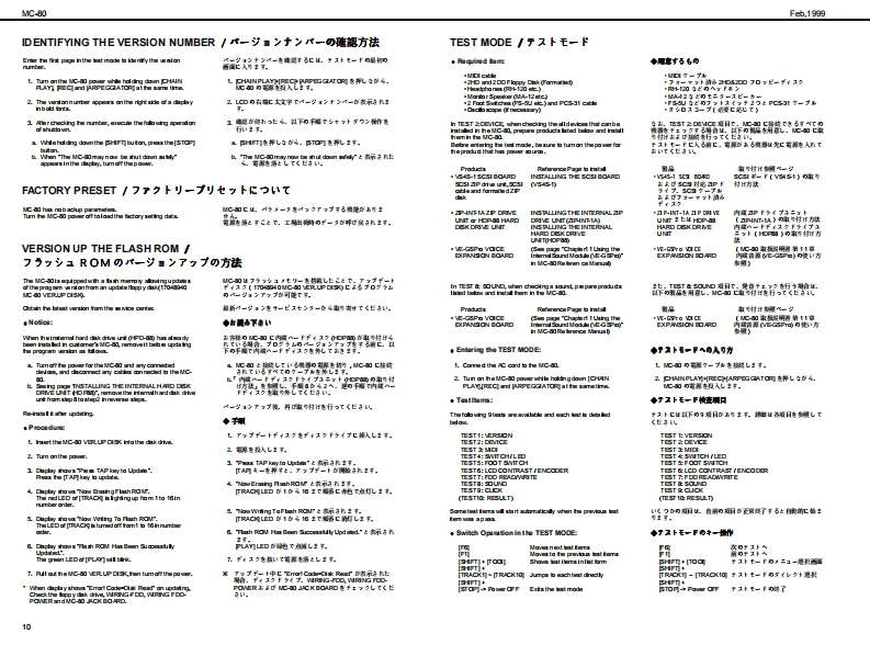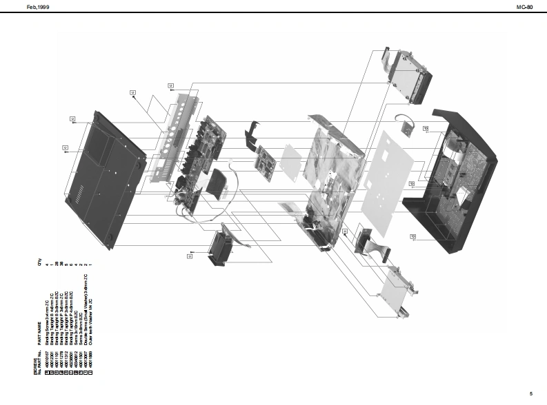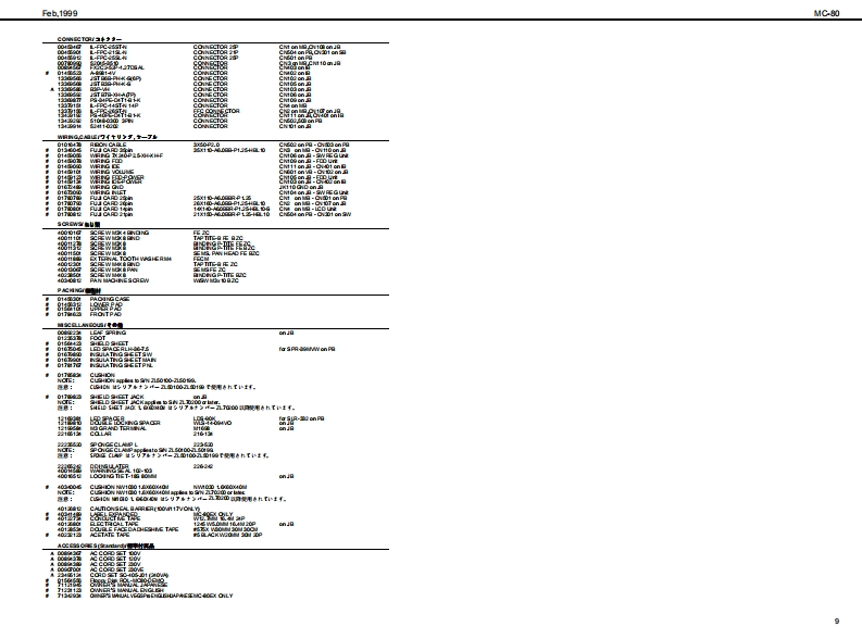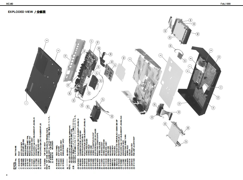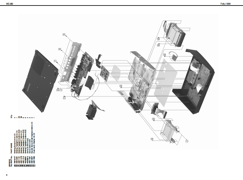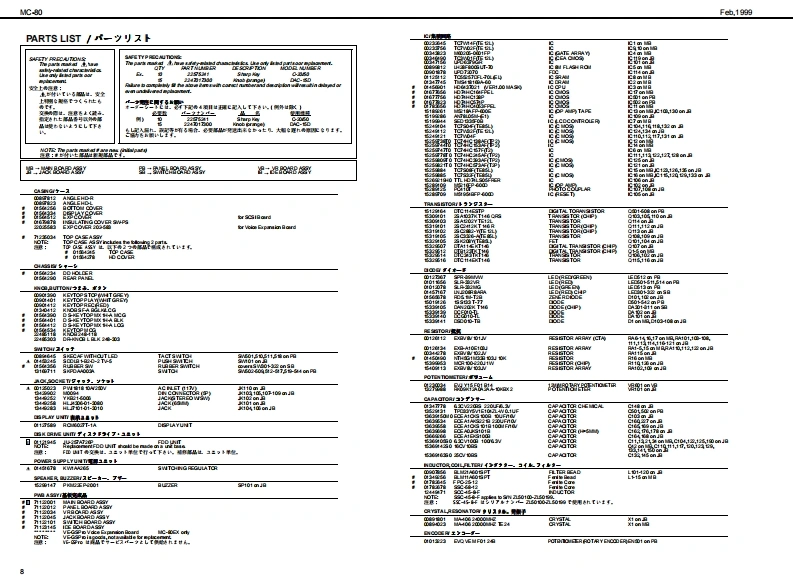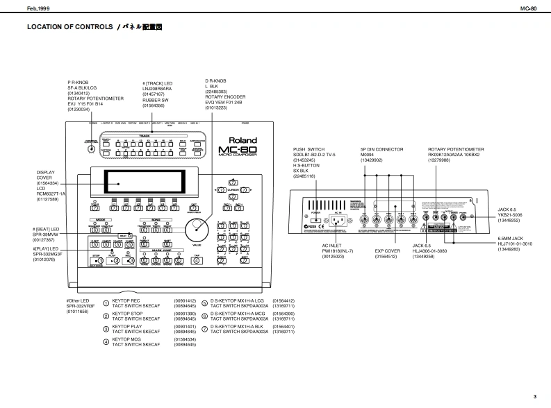 Feh,19的gMC-80MC-B▣/MC-B▣EXSERVICE NOTESSPECIFICATIONS/主◆仕楼MCR▣COMP▣SEHFirst EditionMedt Mee Carpeser MC-80MC-80:74少口”3之装-Mere Campeser MC-a0E (Cempatble withMC3:74口,3之花T一-GM乡方季6Issued by RJAG87有一?y卜封老)[Seqnoar Sectian]口-方之T一都TABLE OF CONTENTS目次P呼,Te超●卜3¥夕数hre重as18 achamd丝rar7-有,k3y夕(8ND1乎女之4TABLE OF CONTENTS.次18/k3y夕:15主拿仕程12Patem Track(1 MOlchannet per track4李一之”上¥夕(8D14年之kLOCATONOF CONTROLS_未从配置可/k3夕:1LOCAT ON OF CONTROLS PARTSLST.Tempo Tradc7若”k3¥夕:1EXPLODEDVEN_分解习6Bafa火E-k·k3y9:1EXPLODEDVIEWPARTS LISTWIRNG DIAGRAM_刀不午)2配可.A maxdmum df 100 pattems can be ereated in a song黑1y?元7意0四相1℃身成多一之老作可被,PARTS LIST.Song Data (hma Memery)重y之少▣平一多(本体x毛9一)DENTFYNG THE VERSON NUM相R风一夕】之十之川一0请授方进110y之数:1FACTORY PRESETNote Capactiesca甲re发12000心es的动00的者HOWTO VERSONUP风一罗3》7,丁方进Song Lengthe9.908 me asuresy7岁展:脑小第TEST MODE_于2上E一10-3Shorage Madia35 inch Miore F月年yD垂松捷理体:5424”74夕日”70¥2一▣日LO0 K DAGRAM7日9图·配绵8.142002H0)平,天夕《200aH01CIRCUT BOARD板罗15-Oisk Fom建720Ks.144Me平4天夕▣7清一7y卜:油就4卜四向CIRCUT DIAGRAM.19-23Note Soragapee美5a000nds2001144M床4卜ONSTALLING THE SC8I日Q49OSC9青7乡3》术一F0取付方年ex1800ees2H间松捷吉数:的组0加0音知).INSTALLING THE INTERNAL ZIP DRNE UNIT.252Song File室99的1储00的音2H可NST风NG THE INTERN风HARD DISK DRIVE UNT-内蓝A一F子(220取付仿一-2627能德y之少”77《春数:的重为解蒙4超0ik鱼quarter nete的0夕口¥夕/4分相.TampoCuarter Nete 5 b 300●梦之若4分音行=5一00.Tme Signatures●拍Roland8d31色8e3284e3242e3221/18-卫/18.1/8-32/8.b0首14-卫/4.1/2-卫/2中i中当MS二-Recerding Methed重业门一平4之方法Realtime.Step9了春34五.方争-axmu Simuan送ous Input Notes链ring realime●量大具入言数(号了春3五·业门一了4之明)recording)8音8侧0金丝白.Maxdmum Simuaneous Ouput Notes●量大同等出办音数84e金srak6音-Loadable Song Type●口一F下意石77《的据吕凸凸B凸BB马wc303sw0 C-8 MC-0e到Ca0y之岁0C3aMCa度0当台MRC Pre (P-80 XP-80 XP.50MCmy之少0n8a0)9d幽rd MDIF日semm0的天多7岁-回774k《7清一7y卜0)andard MDIF)天李2岁一F回774k《7清一7¥卡1)SuperMRC Sangs (MC-50nkl,MC-50)peMic y之0WC0rL,MCs.Savble Sangs Type垂七一子℃怎37744的据MC-80 Soga (c-80 MC-8080MC-a0y?C-aaCa度9当当Sandard MDIFles domto)天多之岁-F回774秦(7清-7学k0)nda间OiF7 demt1)天多之岁一FM回774寿(7清一7¥卜1).Syne MathedMOICloek MTC密巷.MTcCaIE在e wit MM0C材老)Copyright 1999 by ROLAND CORPORATIONAll rights reserved.Nopart d this publcationmay be reproduced in any trm without the writen pemis son ofOLAND CORP0究AL0N本著可一郁.花儿《出坐郁苍斯t液写·载寸石元上态禁北1寸,Roland17059949Printed in Japan(AA0O)(CR)1