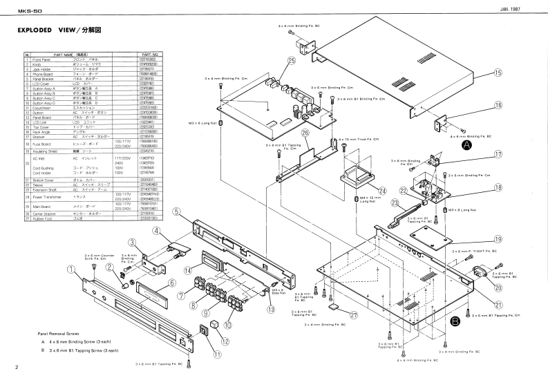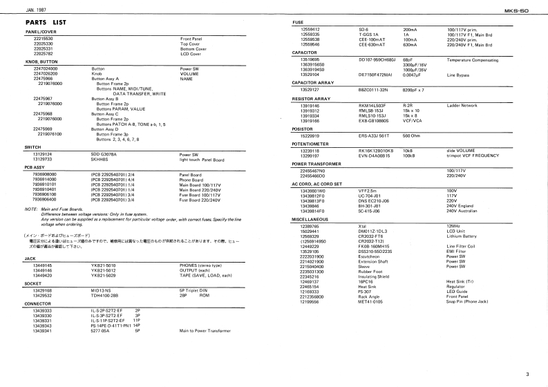 w197WK8-50MKKS-5回SERVICE NOTES800nC04tr220253311First EditionSPECIFICATIONSDCO.TAPEOUTUTLFO MOD土4000飞5E(0ENV MOD±3200cwAFTERTOUCHt4000s飞ooBENDER1200twVCFOUTOFF FREO8H收1o33kk,-2480ctENY MOD±12001LFO MOO60AFTERTOUCH+60(tKEY FDLLOW0=100%DIN Socket Mipi]NS to violet Jck YK21-5029ckYK215012T14mm-301134291681134492301144D1461T2 4ms -30gT3 Brrs-30T4 Srrs-30hLFORATEQ的Ht-80teDELAY TIME0-3038mPHONESB-150n81e1t0POWER CONSUMPTIONEXP16W.12W TJapenDMEW31CWs,11111111:·40GM¥20D4dHmn1B7W1-7/100x1-34H0nWEICHT,,,,,,,,,,,3ka7®.179a2Seeitch SDD G3078ARkA时n21256800E0u0h0n2222038000TpCw22024口0-LED GL0120湖N11002949F0m内r22215网0Batten Aury ABu0nA5Y量Bumion Aon CButton Asoy D224709612247596711224250e81274760阳908Set时he follow in10f小t lellwing.Set of the followingrǖumon Pram的2PSutton Framre 2PBuriro Frme 3P113129174(1312912411131207422470240301ittsMIDI/TUNEButtarBUTTOSBetiontPARAMPATCH A-BUTTDN 212749591川422405504224550m1NAMETONE A-82247569122405505022495507D1224955111ADATA TRANSFERBUTTON 1BUTTON 412☑49550Q1224550011224955131WRITE122490g1BUTTON 522455151BUTTONkY821-0102245510441349145LCD Cower (220257821BUTTON 7LCD Uhit DM0112-1DL3274G12Kn62740762011599441DPansel Removal ScreaasA1ts:S