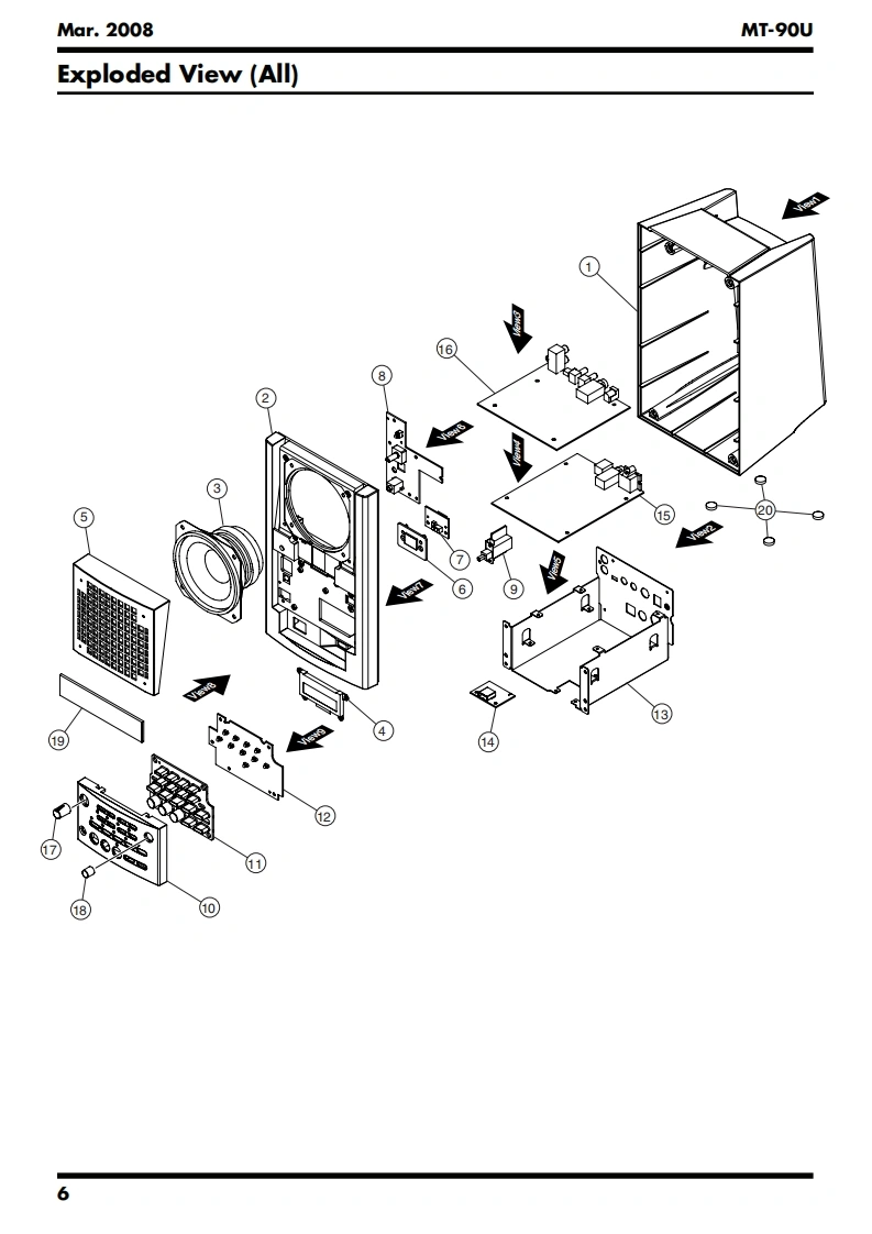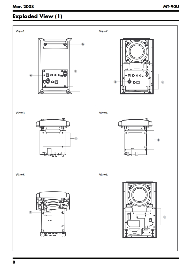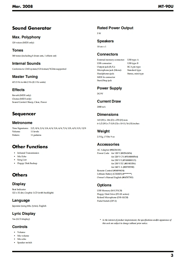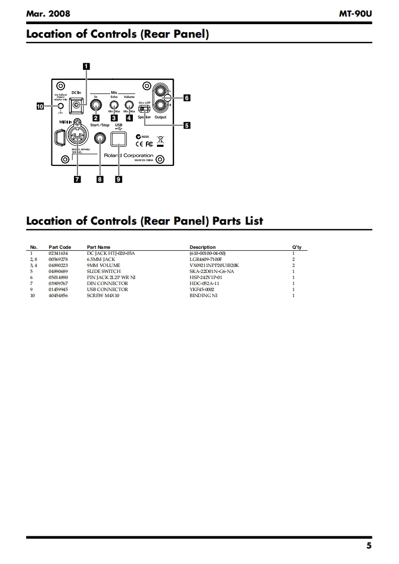 Mar.2008MT-90UMUSIC PLAYERSERVICE NOTESMT-900Issued by RJATable of ContentsCautionary Notes..2TestMain Specifications....2Circuit Board (Main Board)22Location of Controls(Front Panel)....4Circuit Diagram (Main Board:1/4)..24Location of Controls(Front Panel)Parts List..........4Circuit Diagram (Main Board:2/4)......26Location of Controls (Rear Panel)............5.Circuit Diagram (Main Board:3/4)....2Location of Controls(Rear Panel)Parts List...............5Circuit Diagram (Main Board:4/4).....................28Exploded View(Al)…6Circuit Board (Panel Board)..30Exploded View(All)Parts List.Circuit Diagram(Panel Board)..........32Exploded View (1)......8Circuit Board (Jack,Volume,IR,USB,Power SWExploded View(1)Parts List.......9Board)34Exploded View (2).............10Circuit Diagram (Jack Board:1/3).....36Exploded View (2)Parts List..10Circuit Diagram (ack Board:2/3).38Important Notes on Assembly....11Circuit Diagram (ack Board:3/3)........4.0Block Diagram/Wiring Diagram..14Circuit Diagram (Volume Board)..42Parts List..16Circuit Diagram (IR Board).............44Verifying the Version Number....18Circuit Diagram(USB Board).....44Performing a Factory Reset..18Circuit Diagram (Power SW Board).............45Updating the System .......18RolandMT如0■0⊙⊙2mp3Copyright 2008 Roland CorporationAll rights reserved.No part of this publication may be reproduced in any form without the written permissionof Roland Cororation.Roland17058572E0Printed in Japan(0285)(CC-KWS)