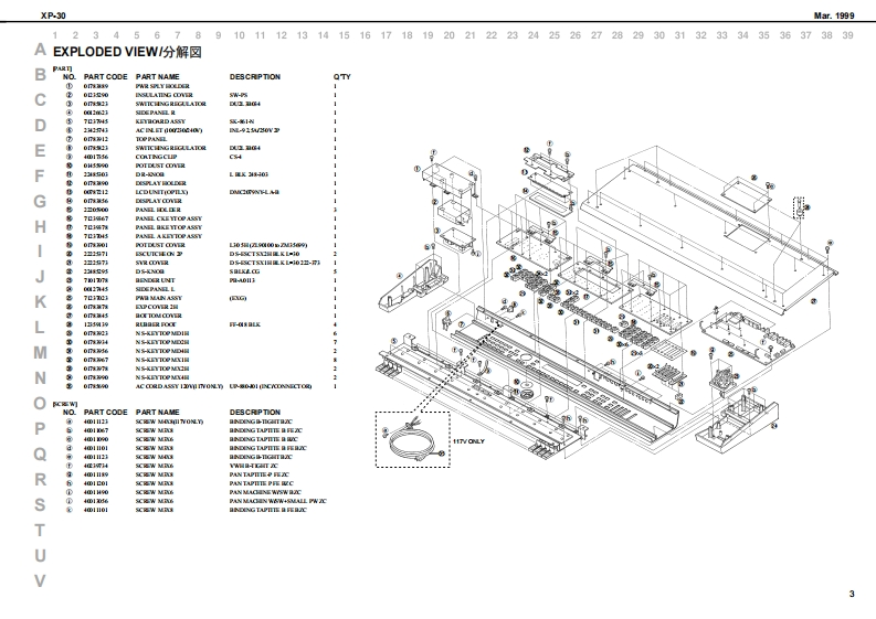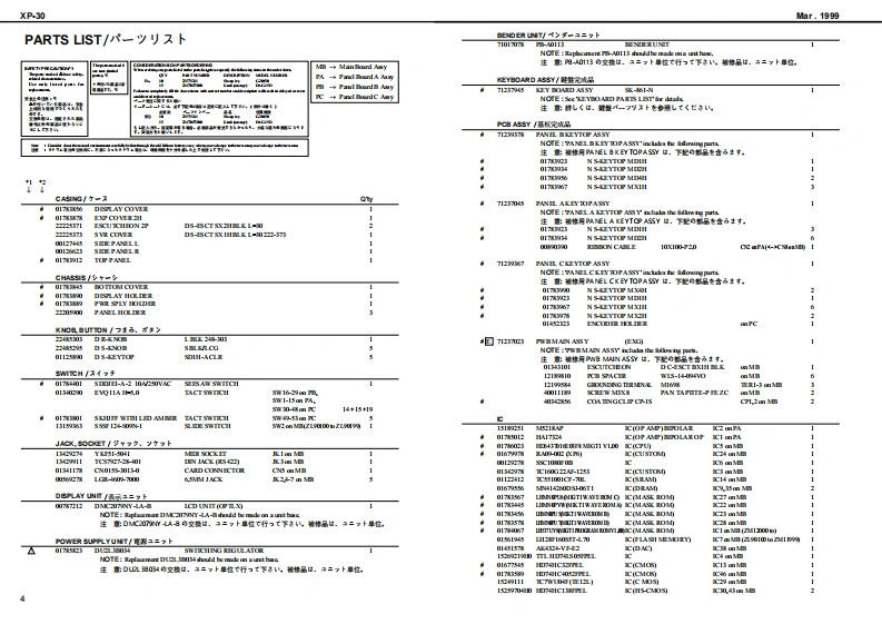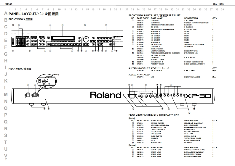 XP.30Wsy.1999X尸-马口SERVICE NOTESSPECIFICATIONS主套仕樣First Editiond南山,瑞1a4.477Voice Expandable SynthesizerIssued by RJA鲁du■htd写年化手数dwbns1化事0址u不a·化康】TABLE OF CONTENTS目次Page◆吸锁Knadi1 silipmoChaw I 9lSPECFICATIONS主幸什模PANEL LAYOUT成未春配百凤s内E量a2年列电?·里-.2PAhe 104d6 enheN边+n下d”Uh山Fd,于:M送H:aw海+:”8da“OdaEXPLODEDMEW分解凤PARTS USTAe7号天卜7a·8,事:孟10:W随+笔:“a””1eICENTIFYNG THEVERSION NUMEBER术。梦■之于之术=的雨规方使CelntinCaeoke 1Saving and白gw由aFacary Roet preoadure77夕卜号一号七7卜的方使9床。梦。之了y的方使9分+hu19只4·8?:1TEST MOOE7天k毛eFERRORMESSACE玉e”y七9NEB00OSAS交3aY健垂分解于厘7角方王一CROUT BOARDKEYEOARD)琴长圆(就垂).KEYEOARD ORCUT DIAGRAM健风NEB00SASs交3aY量分挥手闻鲁Ayhe◆13王341%HImBLOCKOIGRAM7日3夕同03-5:1w都CROUT BOARD OMAIN基长司O.21CROUT OAGRAM OMAN)A司O..2拉CROUT DIAGRAM OMAN)同A周OCROUT DAGRAM OMAN)0O.车B时写●7(7九42446aa线3 neaiiLe的261,州L①1CROUT BOARDPANEL BOARD ABC基长0 EL BOARD A8O:CROUT DIAGRAM (PANEL BOARD ABC)ANEL BOAR D ABC).开。9221©01-1Mmaycal Nat9一4h-g·3日g“C。ACn*2au12aliteslons线寸进XP-30的1】:2番1黄行:量1海本1*ma甲t✉aA●1Hs接#6t编k文:0国41地MS自#世与海中碳及2情中家是2投咒品4A国家e学m起地::a4414一f一厚·A多)罪:6401-al[Seandfs a rx市起与Copyright 1999 by ROLAND CORPORATION卡的台发脂上报丝微肉确上子春心表天有二止都4明士题1阳0一分之F本湘0一年.《儿止全等老如斯C限号:起箱书名己上老儿1事。1Roland17059967Prined in Japan《Aa00(Dy