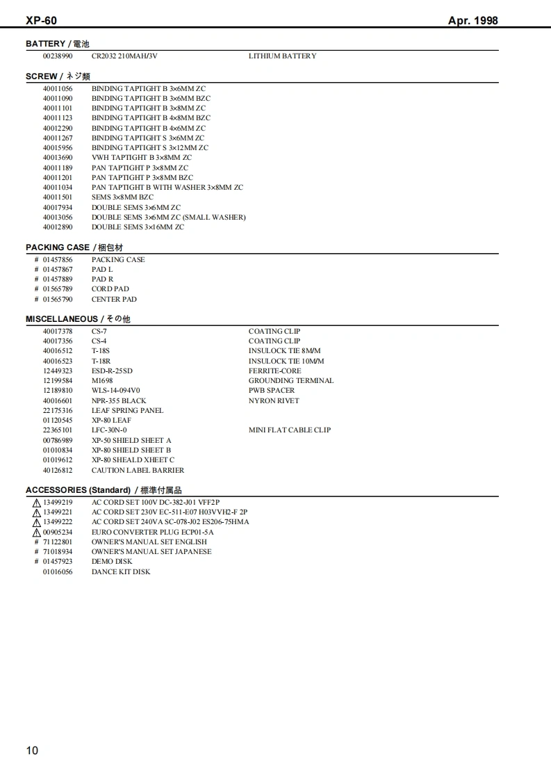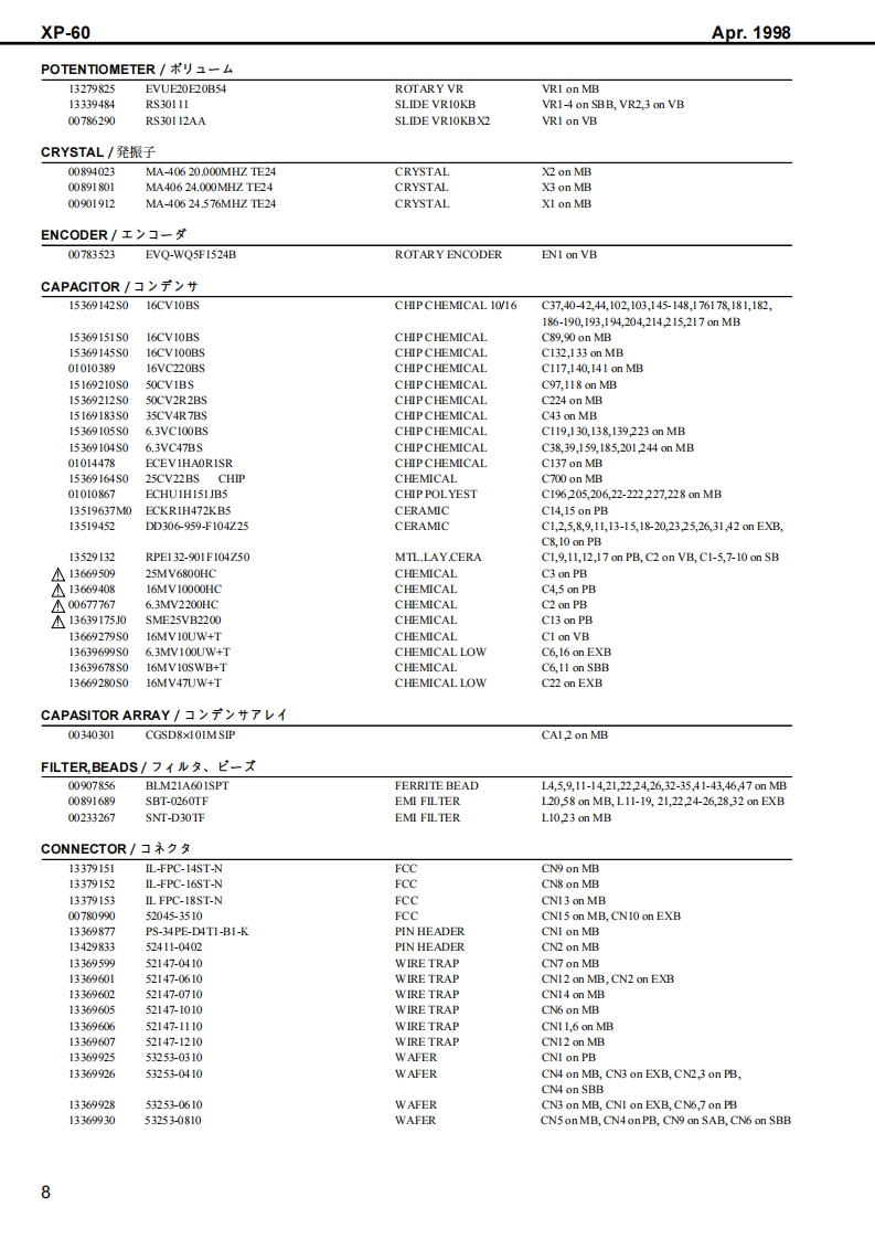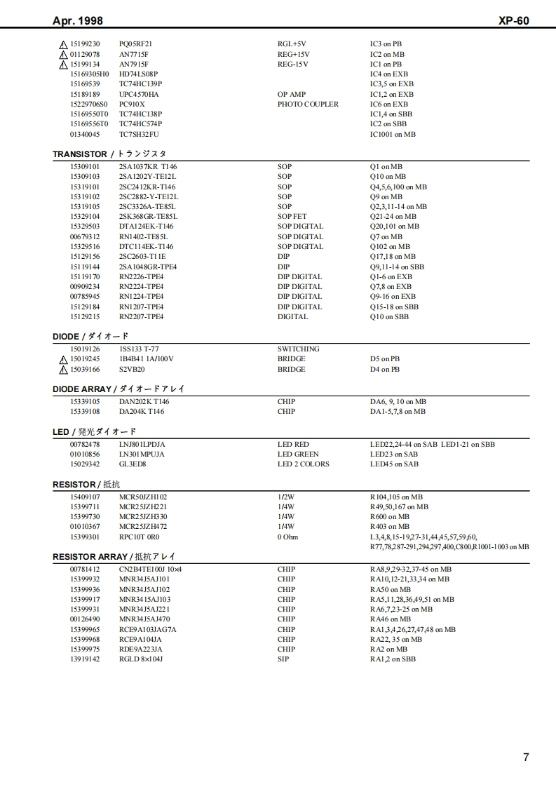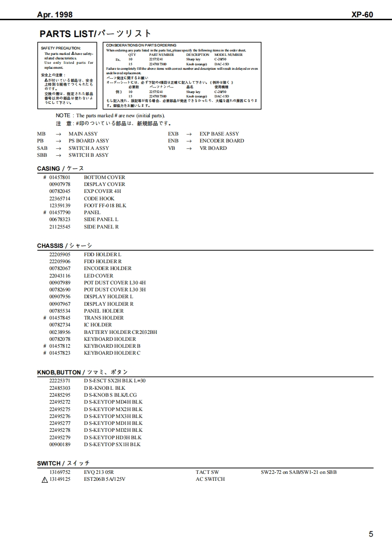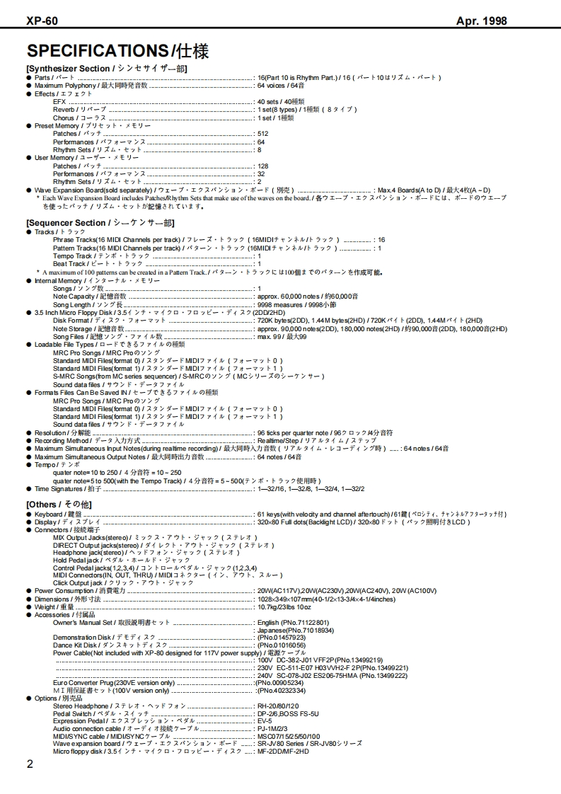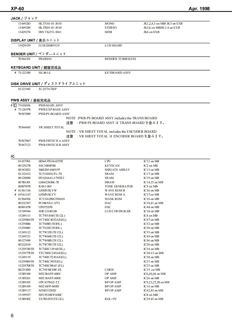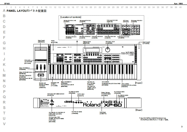 Apr.1998XP-60X尸-石口SERVICE NOTESFirst EditionUSIC WORKSTATI▣NIssued by RJATABLE OF CONTENTS目次PageGENERAL VIEW概想㘝1SPECIFICATIONS仕樣50550...PANEL LAYOUTバ未儿配置回EXPLODED VIEW分解回…….4PARTS LISTバ一ツ)又卜5KEYBOARD PARTS LIST键盤バ一ツ)又卜KEYBOARD DISASSEMBLY键盤分解手順12IDENTIFYING THE VERSION NUMBERバ一沙ョ之才>バ一の確認方法15USER DATA SAVE AND LOAD1一圹一デ、一夕の七一寸上口一N15FACTORY PRESET77夕卜刂一ブ刂七卜の方法16VERSION UP THE FLASH ROM7ラy之1ROMのバ一芝ョ>UPの方法16HOW TO ENTER THE TEST MODE于又卜E一ド人O入)方17TEST MODE于又kE一F17HOW TO EXIT THE TEST MODE于又卜王一F办今O拔付方25BLOCK DIAGRAM才0y夕回26CIRCUIT BOARD(MAIN)基板回(MAI)27CIRCUIT DIAGRAM(MAIN)回路㘝(MAI)28CIRCUIT BOARD(EXP)基板@(EXP)31CIRCUIT DIAGRAM(EXP)回路@(EXP)32CIRCUIT BOARD(SIDE PANEL ENCODER)基板☒(SIDE PANEL,ENCODER)CIRCUIT DIAGRAM(SIDE PANEL.ENCODER)回路☒(SIDE PANEL,ENCODER)33CIRCUIT BOARD(PS,TRANS)基板☒(PS,TRANS)........................34CIRCUIT DIAGRAM(PS.TRANS)回路☒(PS,TRANS)CIRCUIT BOARD(SWITCH A)基板回(SWITCH A)必CIRCUIT DIAGRAM(SWITCH A)回路☒(SWITCH A)35CIRCUIT BOARD(SWITCH B)基板回(SWITCH B)...................36CIRCUIT DIAGRAM(SWTCH B)回路㘝(SWITCH E)36当白白白山山山✉Copyright 1998 by ROLAND CORPORATIONAll rights reserved.No part of this publication may be reproduced in any form without the written permission of ROLANDCORPORATION.本書の一部。古〈儿住全部态無断℃複写·酝栽寸石二上态禁北主寸,Roland17059917Printed in Japan ACE0(DP-P)1