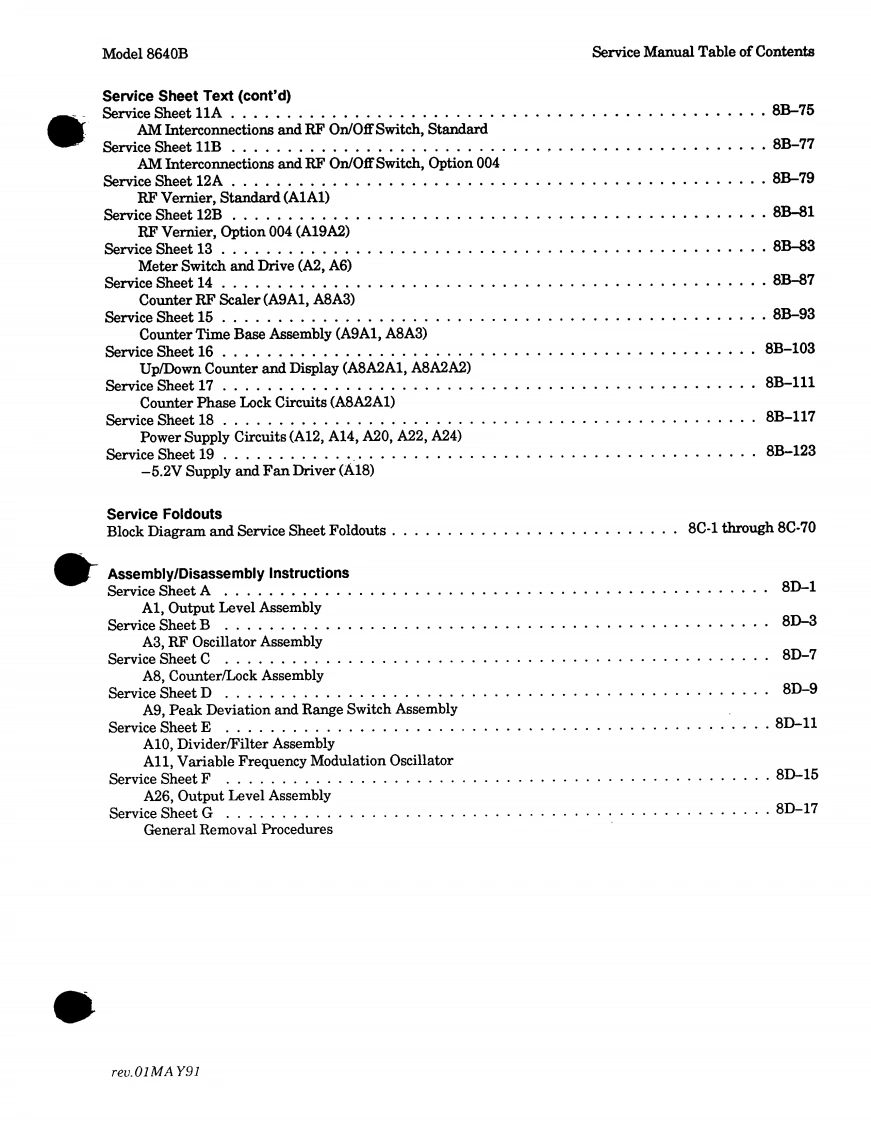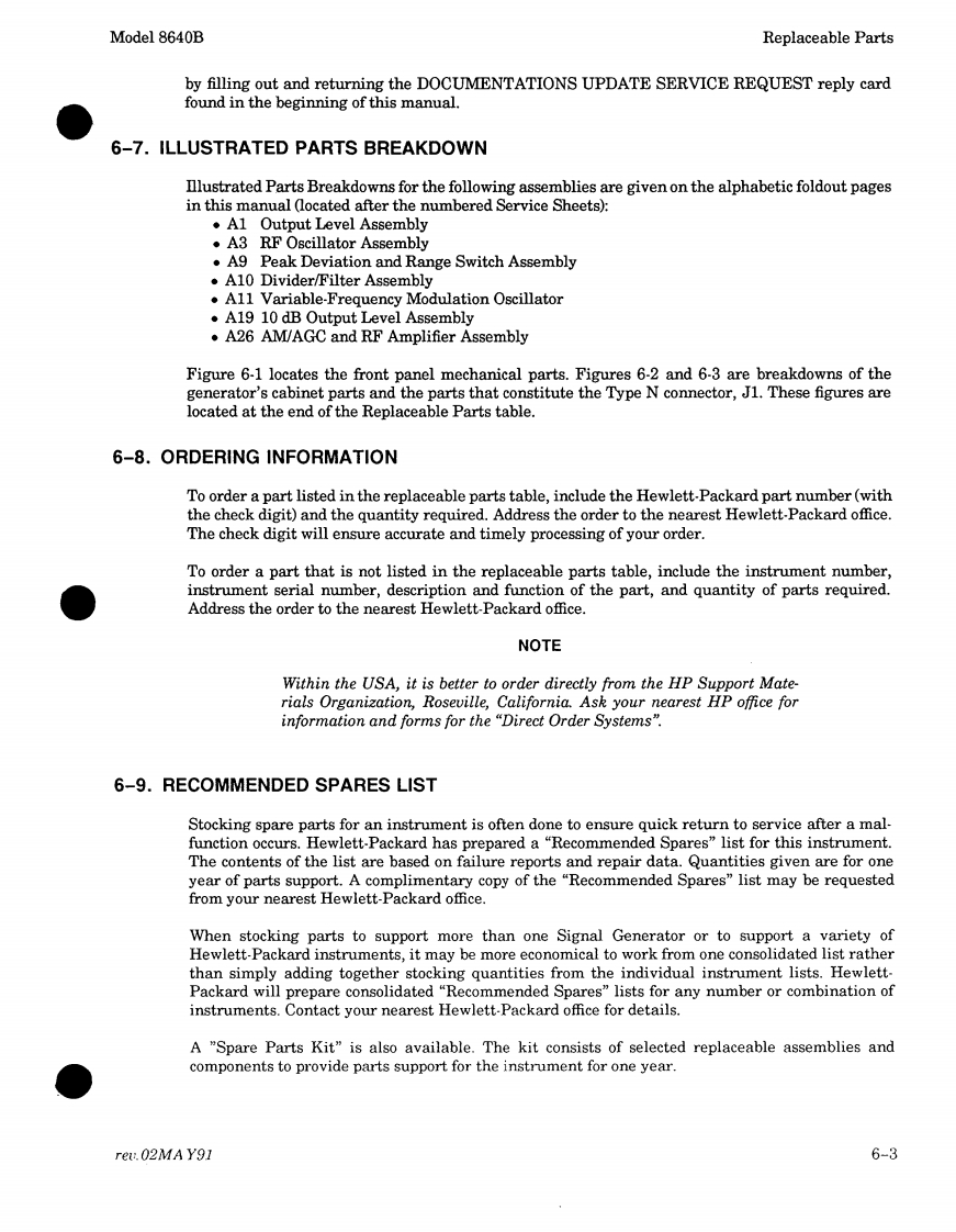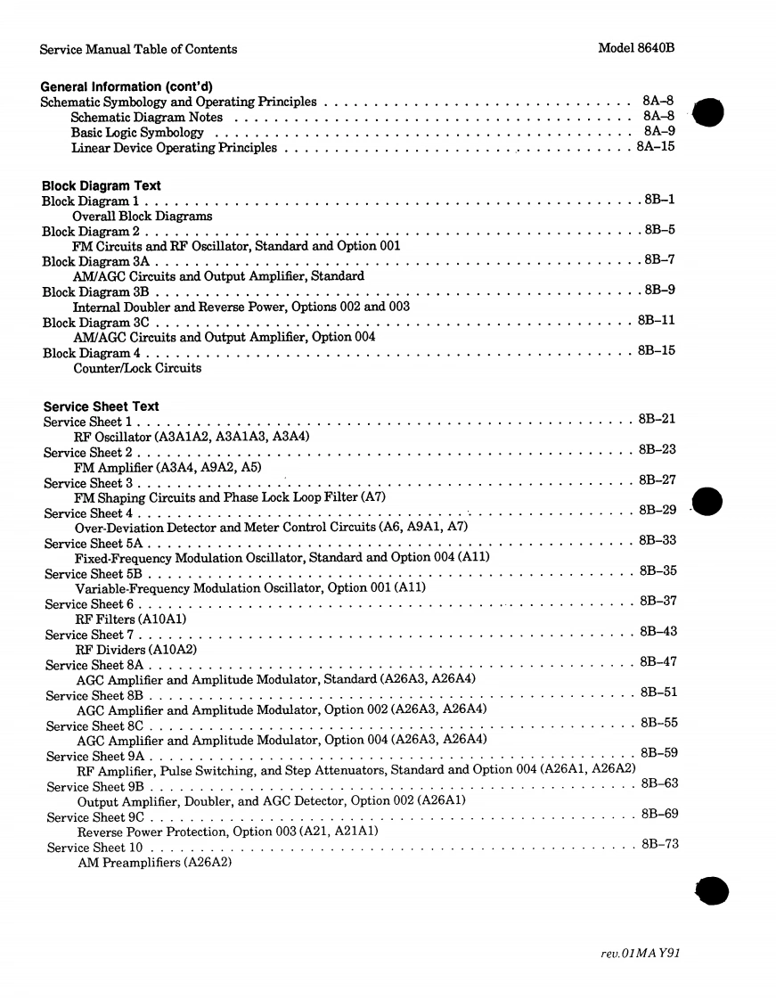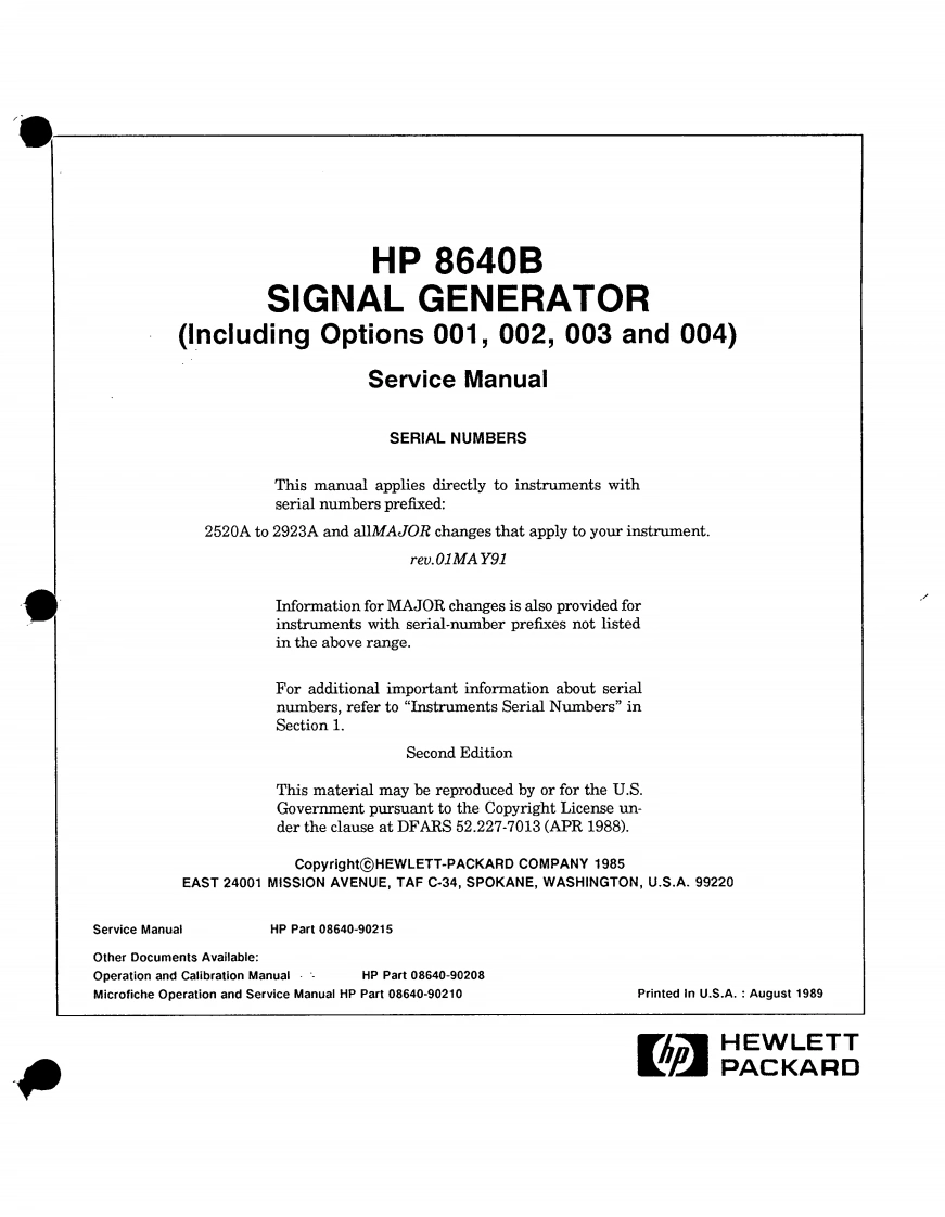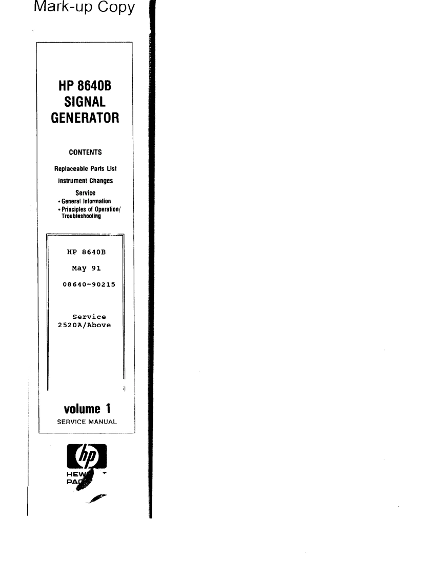 ErrataTitle&Document Type:8640B Service Manual Volumes1 and 2Manual Part Number:08640-90215Revision Date:May 1991HP References in this ManualThis manual may contain references to HP or Hewlett-Packard.Please note that Hewlett-Packard's former test and measurement,semiconductor products and chemical analysisbusinesses are now part of Agilent Technologies.We have made no changes to thismanual copy.The HP XXXX referred to in this document is now the Agilent XXXXFor example,model number HP8648A is now model number Agilent 8648A.About this ManualWe've added this manual to the Agilent website in an effort to help you support yourproduct.This manual provides the best information we could find.It may be incompleteor contain dated information,and the scan quality may not be ideal.If we find a bettercopy in the future,we will add it to the Agilent website.Support for Your ProductAgilent no longer sells or supports this product.You will find any other availableproduct information on the Agilent Test Measurement website:www.tm.agilent.comSearch for the model number of this product,and the resulting product page will guideyou to any available information.Our service centers may be able to perform calibrationif no repair parts are needed,but no other support from Agilent is available.Agilent Technologies