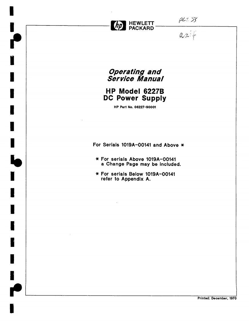 ErrataTitle&Document Type:6227B Operating and ServiceManualManual Part Number:06227-90001Revision Date:December 1970HP References in this ManualThis manual may contain references to HP or Hewlett-Packard.Please note that Hewlett-Packard's former test and measurement,semiconductor products and chemical analysisbusinesses are now part of Agilent Technologies.We have made no changes to thismanual copy.The HP XXXX referred to in this document is now the Agilent XXXXFor example,model number HP8648A is now model number Agilent 8648A.About this ManualWe've added this manual to the Agilent website in an effort to help you support yourproduct.This manual provides the best information we could find.It may be incompleteor contain dated information,and the scan quality may not be ideal.If we find a bettercopy in the future,we will add it to the Agilent website.Support for Your ProductAgilent no longer sells or supports this product.You will find any other availableproduct information on the Agilent Test Measurement website:www.tm.agilent.comSearch for the model number of this product,and the resulting product page will guideyou to any available information.Our service centers may be able to perform calibrationif no repair parts are needed,but no other support from Agilent is available.Agilent Technologies