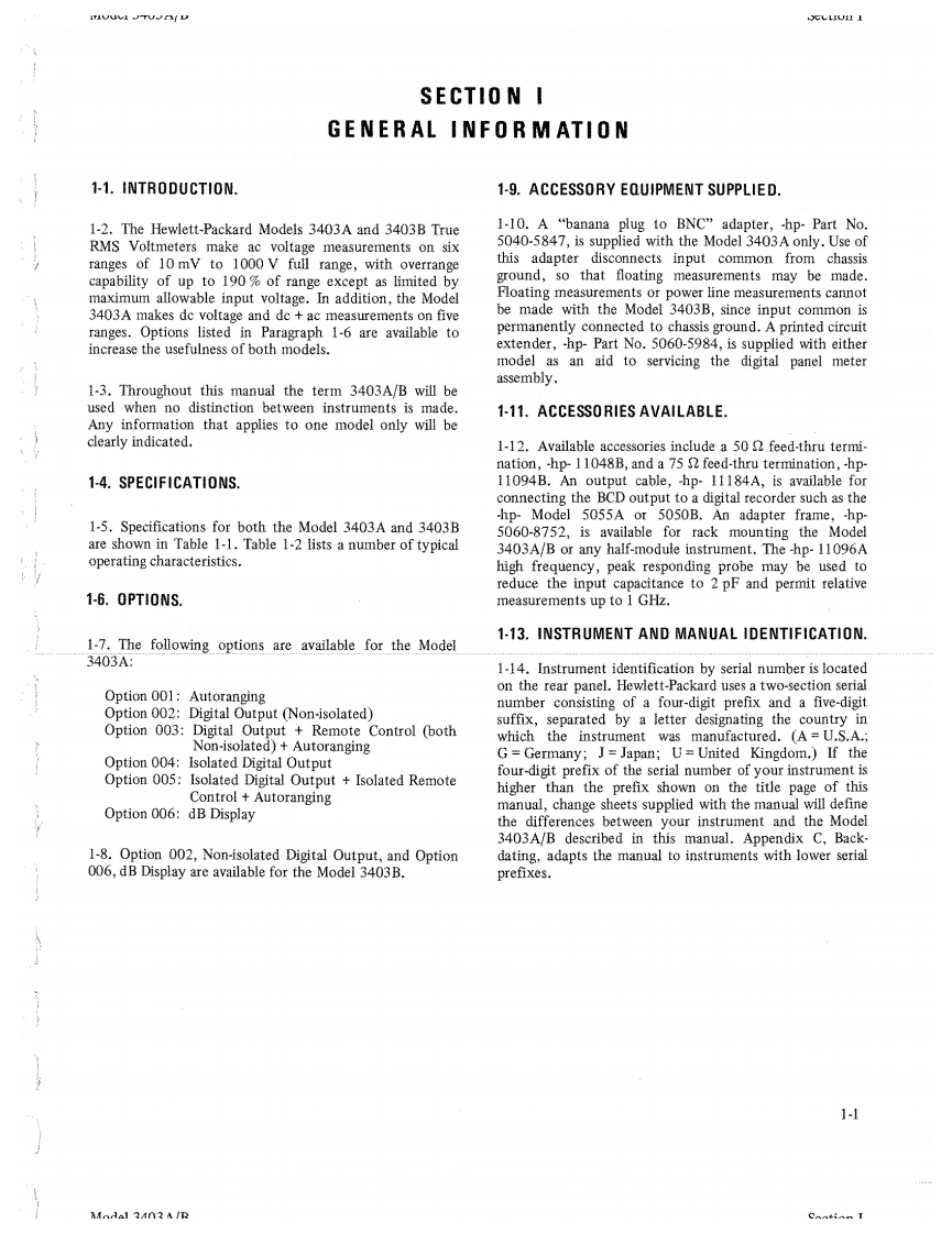 OPERATING AND SERVICE MANUALManual Part No.03403-90002Microfiche Part No.03403-90052MODEL 3403AMODEL 3403BTRUE RMS VOLTMETER3403A Serials Prefixed:1223.3403B Serials Prefixed:1135-Appendix C,Manual Backdating Changes,adapts thismanual to 3403A serial prefixes 1124-and 1151-.Copyright Hewlett-Packard Company 1971P.O.Box 301,Loveland,Colorado 80537 U.S.A.Printed:November 1972
