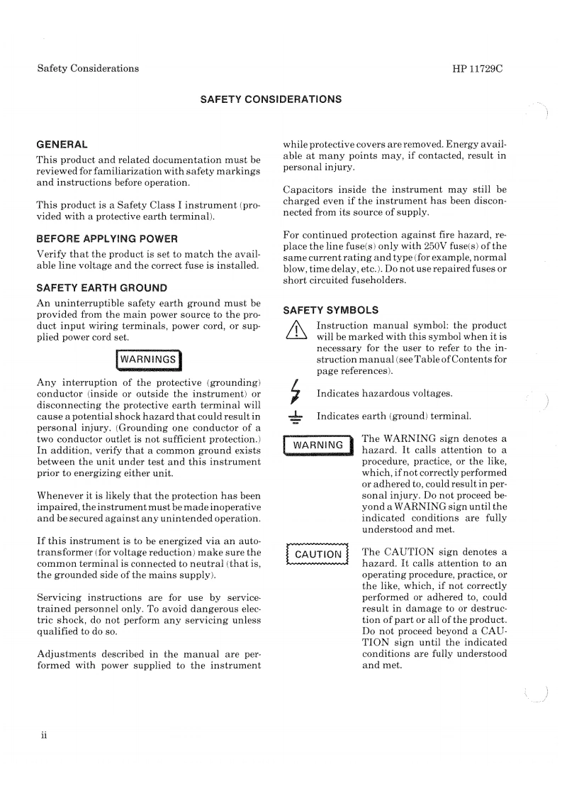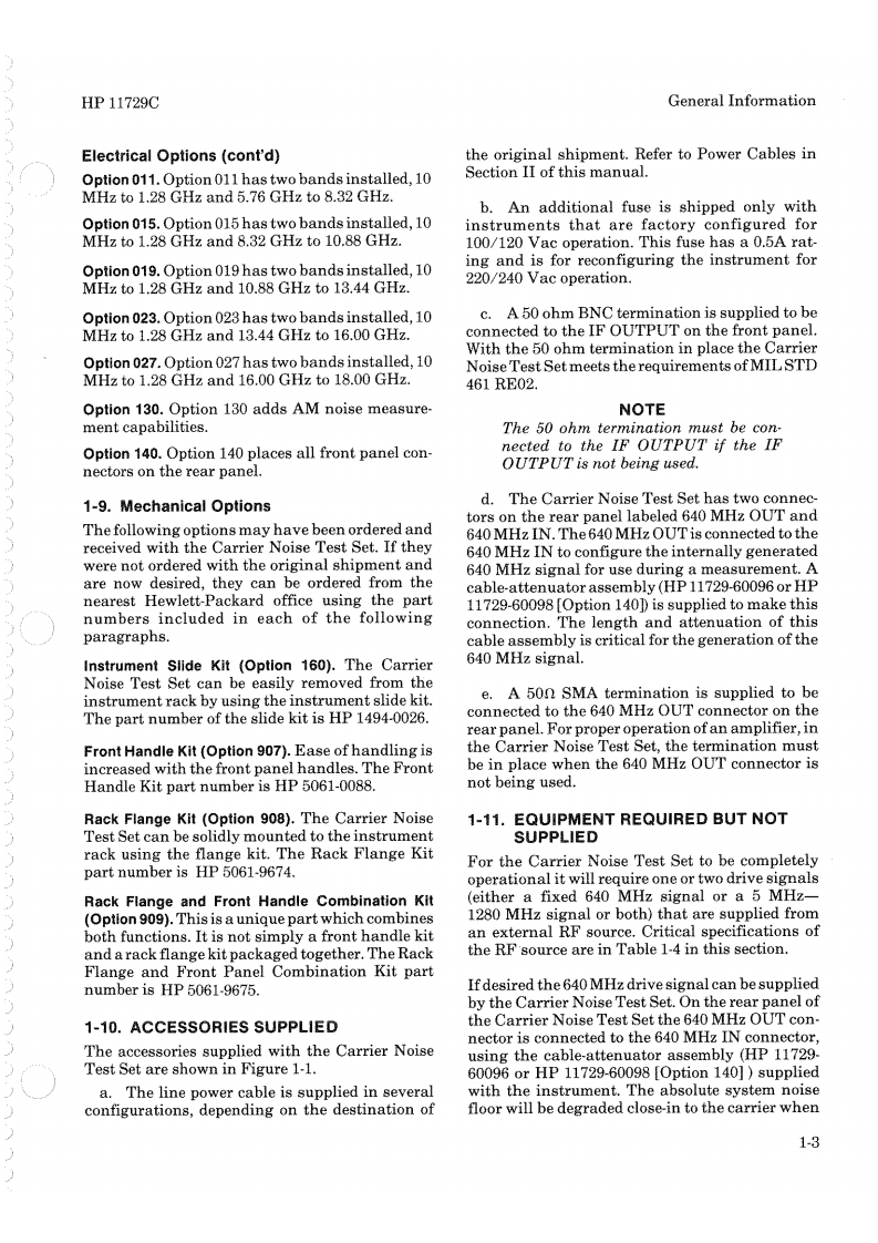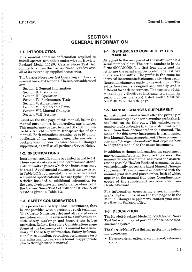 OPERATING AND SERVICE MANUALHP11729CCARRIER NOISE TEST SET(Including0 ptions003,007,011,015,019,023,027,130and140SERIAL NUMBERSThis manual applies directly to instruments withserial numbers prefixed 2509A.For additionalimportantinformation about serialnumbers,see INSTRUMENTS COVERED BYTHIS MANUAL in Section I.pHEWLETTPACKARDCopyright HEWLETT-PACKARD COMPANY 1985E.24001 MISSION AVE..TAF C-34,SPOKANE,WASHINGTON,U.S.A.99220))OPERATING AND SERVICE MANUAL PART NUMBER:11729-90017MICROFICHE PART NUMBER:11729-90018Printed:MARCH 1985