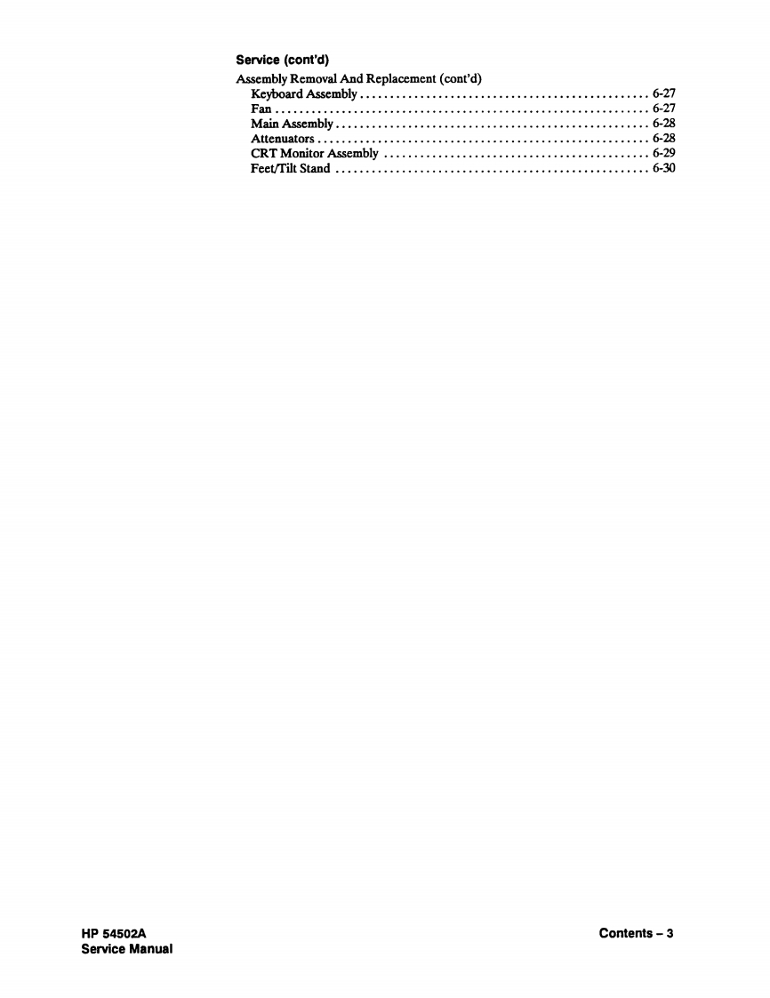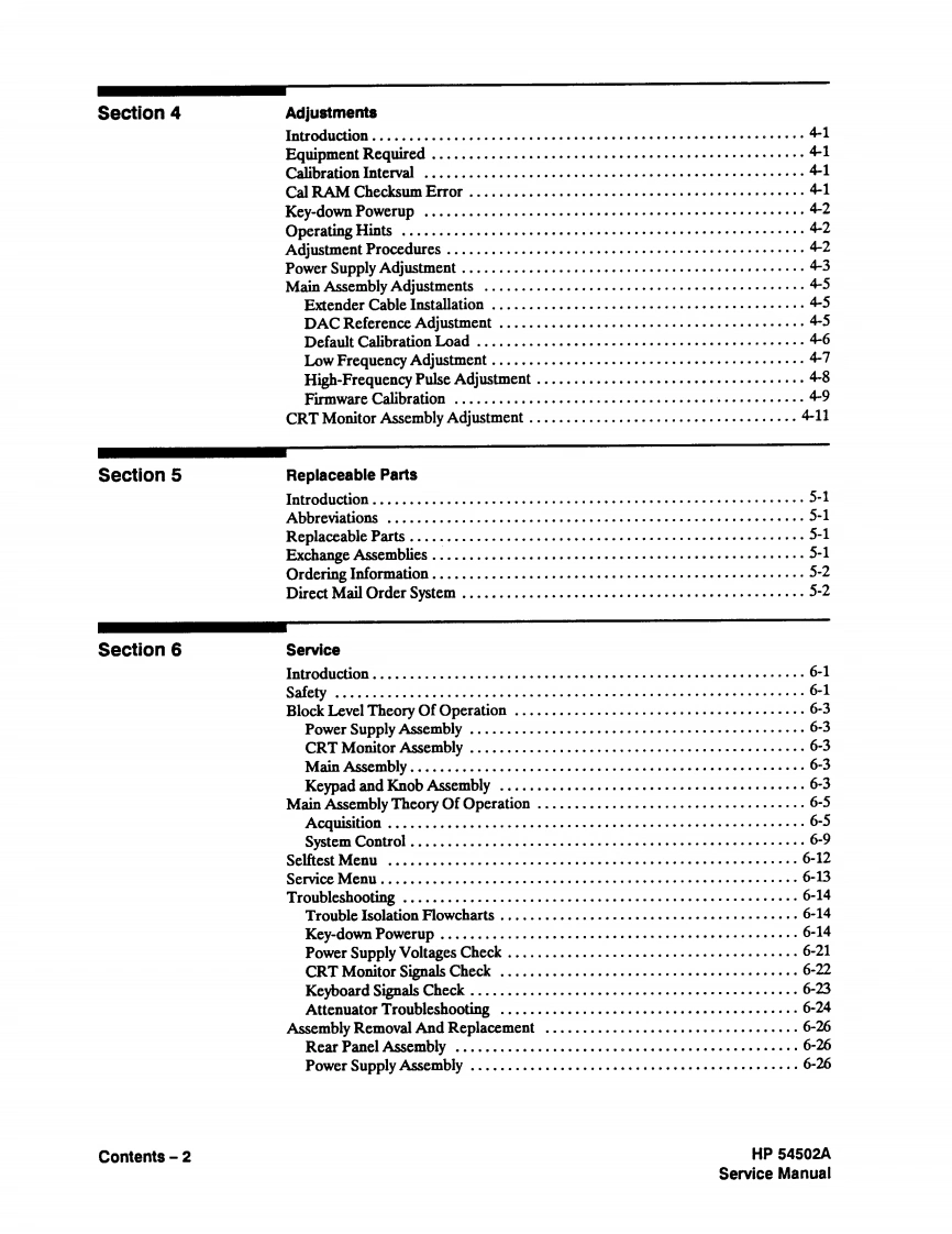 HEWLETTPACKARDSERVICE MANUALHP54502ADigitizing OscilloscopeSERIAL NUMBERSThis manual applies directly to instrumentsprefixed with serial numbers:2927A,2934AFor additional information about serial numbers seeINSTRUMENTS COVERED BY THIS MANUALin Section 1.COPYRIGHT HEWLETT-PACKARD COMPANY/COLORADO SPRINGS DIVISION 19891900 GARDEN OF THE GODS ROAD,COLORADO SPRINGS,COLORADO U.S.A.ALL RIGHTS RESERVEDManual Part No.54502-90907Microfiche Part No.54502-90807Printed in U.S.A.January 1991