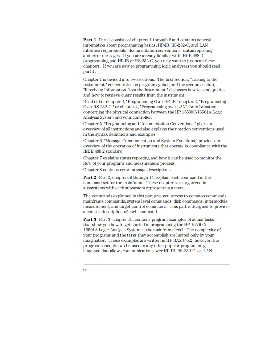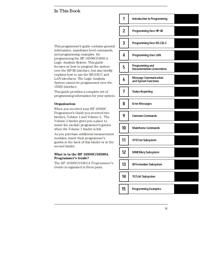 Programmer's GuidePublication number 16500-97018First edition,December 1996For Safety information,Warranties,and Regulatoryinformation,see the pages behind the IndexCopyright Hewlett-Packard Company 1987,1990,1993,1994,1996All Rights ReservedHP16500C/16501ALogic Analysis System