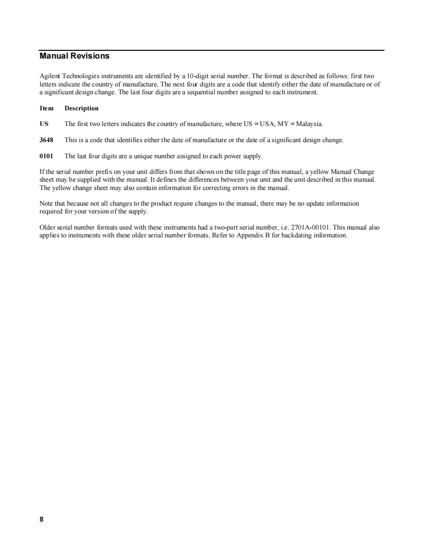 SERVICE MANUALAUTORANGINGDC POWER SUPPLYAGILENT MODELS 6010A,6011A,6012Band6015AAgilent Part No.5964-8275FOR INSTRUMENTS WITH SERIAL NUMBERSAgilent Model 6010A;Serials US37110171 and aboveAgilent Model 6011A;Serials US35460156 and aboveAgilent Model 6012B;Serials US35430336 and aboveAgilent Model 6015A;Serials US37050146 and aboveFor instruments with higher serial numbers,a change page may be included.Agilent TechnologiesMicrofiche Part No.5964-8276Printed in USA:July 2001