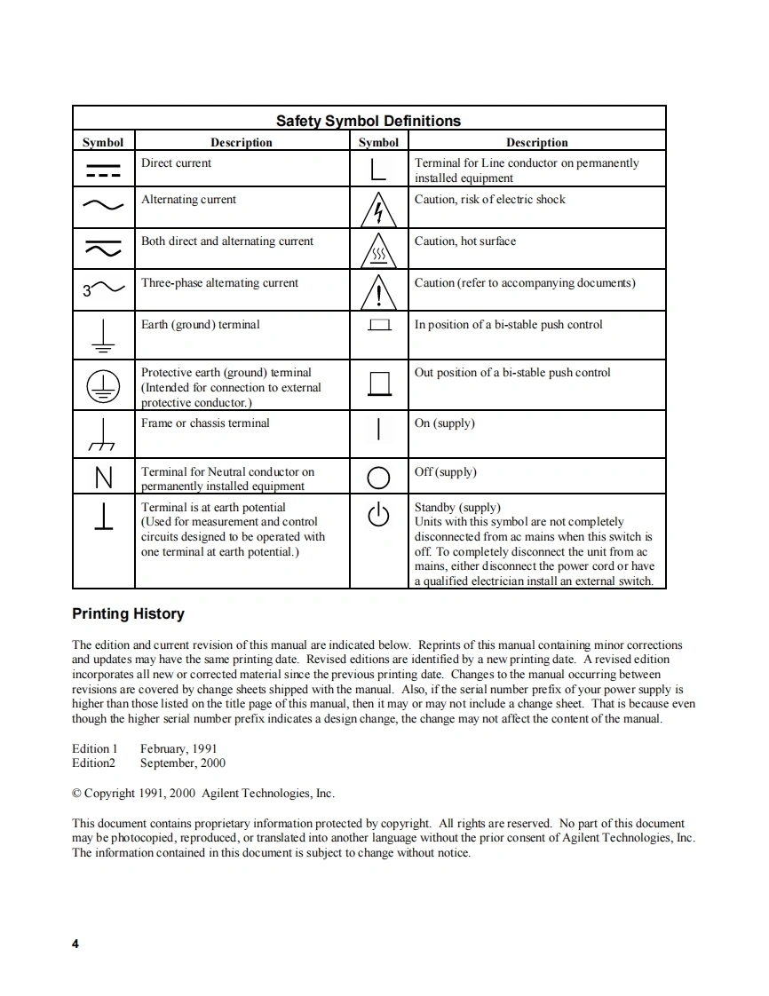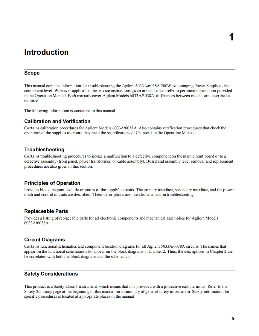 SERVICE MANUALAUTORANGINGSYSTEM DC POWER SUPPLYAGILENT MODELS 6033A and 6038AFOR INSTRUMENTS WITH SERIAL NUMBERSAgilent Model 6033A;Serials US38320231 and aboveAgilent Model 6038A;Serials US38310401 and aboveFor instruments with higher serial numbers,a change page may be included.Agilent TechnologiesAgilent Part No.5959-3346Printed in USAMicrofiche Part No.5959-3347September,2000
