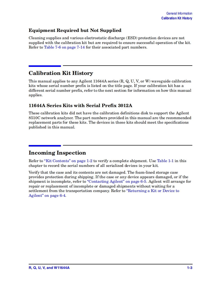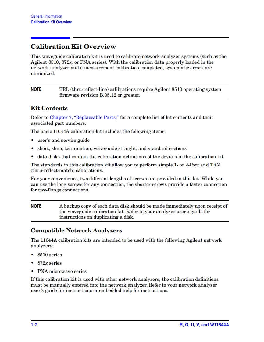 User's and Service GuideAgilent Technologies 11644AR,Q,U,V,and WWaveguide Calibration KitsThis manual applies to 11644A series calibration kits withserial number prefix 3032A.Agilent TechnologiesAgilent Part Number:11644-90369Printed in USAPrint Date:October 2006Supersedes:June 2006Copyright 1994,1997,2002,2006 Agilent Technologies,Inc.All rights reserved.
