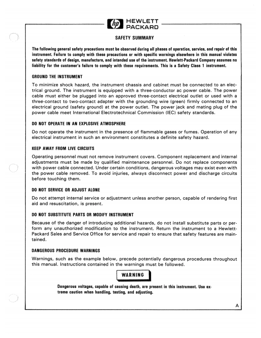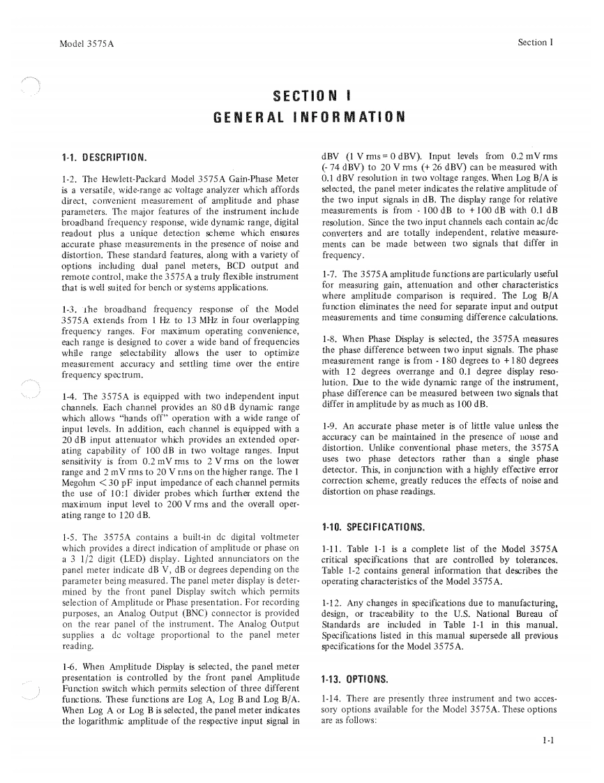 HEWLETTPACKARDOPERATING AND SERVICE MANUALMODEL 3575AGAIN-PHASE METERSerial Number:1450A01646IMPORTA餐T NOTICEThis loose-leaf manual does not require a change sheet.Allchange information has been integrated into the manual by meansof revised pages.Each revised page is identified by a revisionletter located at the bottom of the page.A reference,locateddirectly below the revision letter,indicates which of thebackdating changes in Appendix C apply to that page.If the serialnumber of your instrument is lower than the one on this title pagethe manual contains revisions that may not apply to your instru-ment.Refer to Appendix C for complete backdating information.WARNINGTo help minimize the possibility of electrical fireor shock hazards,do not expose this instrumentto rain or excessive moisture.Manual Part No.03575-90002Microfiche No.03575-90053@Copyright Hewlett-Packard Company 1972P.O.Box 301,Loveland,Colorado 80537 U.S.A.Printed:June 1976
