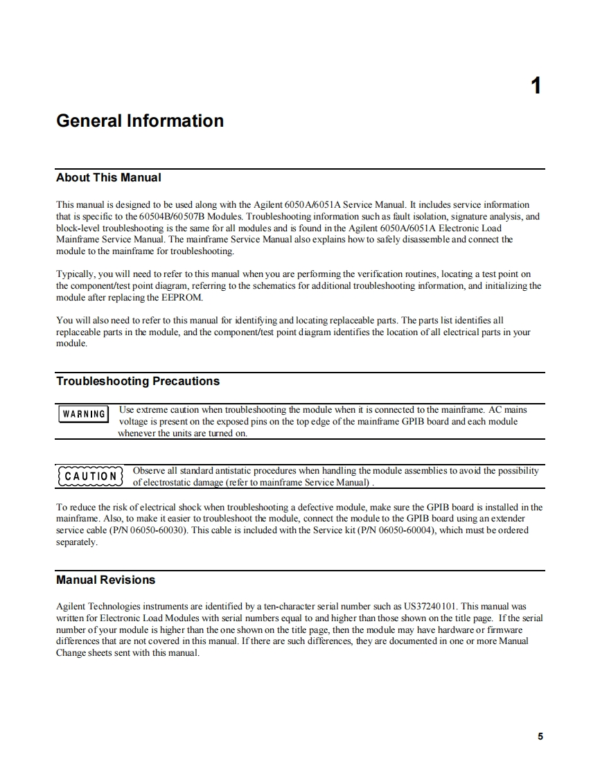 SERVICE MANUAL600 AND 500 WATTELECTRONIC LOAD MODULESAgilent 60504B AND 60507BPart No.60504-90011SERVICE MANUALFOR INSTRUMENTS WITH SERIAL NUMBERSAgilent 60504B US37240101 AND ABOVEAgilent 60507B US37140101 AND ABOVEFor instruments with higher Serial Numbers,a change page may be included.Microfiche Part No.60504-90012Printed in USA:September,1999