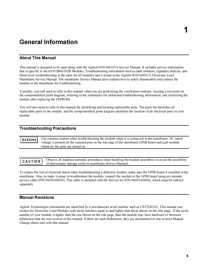 SERVICE MANUAL150 AND 300 WATTELECTRONIC LOAD MODULESAgilent 60501B AND 60502BPart No.5951-2830SERVICE MANUALFOR INSTRUMENTS WITH SERIAL NUMBERSAgilent 60501B US37240101 AND ABOVEAgilent 60502B US37240101 AND ABOVEFor instruments with higher Serial Numbers,a change page may be included.Microfiche Part No.5951-2831Printed in USA:September,1999