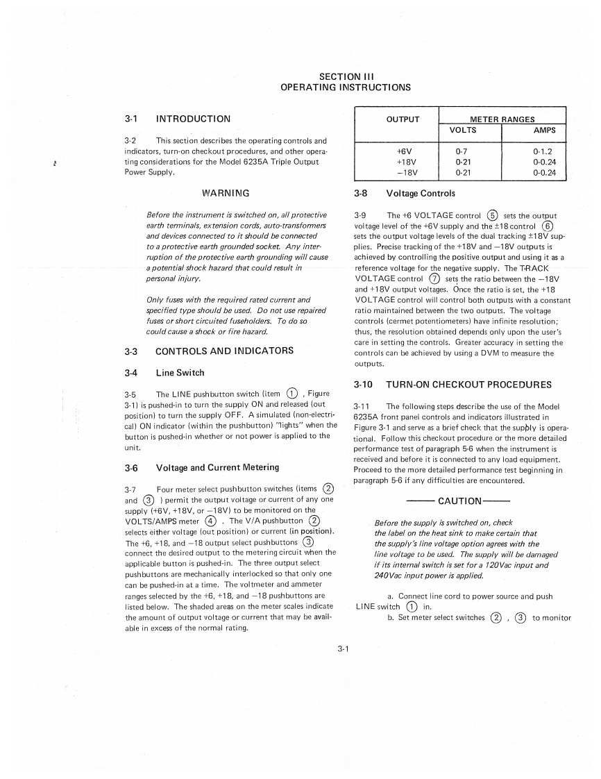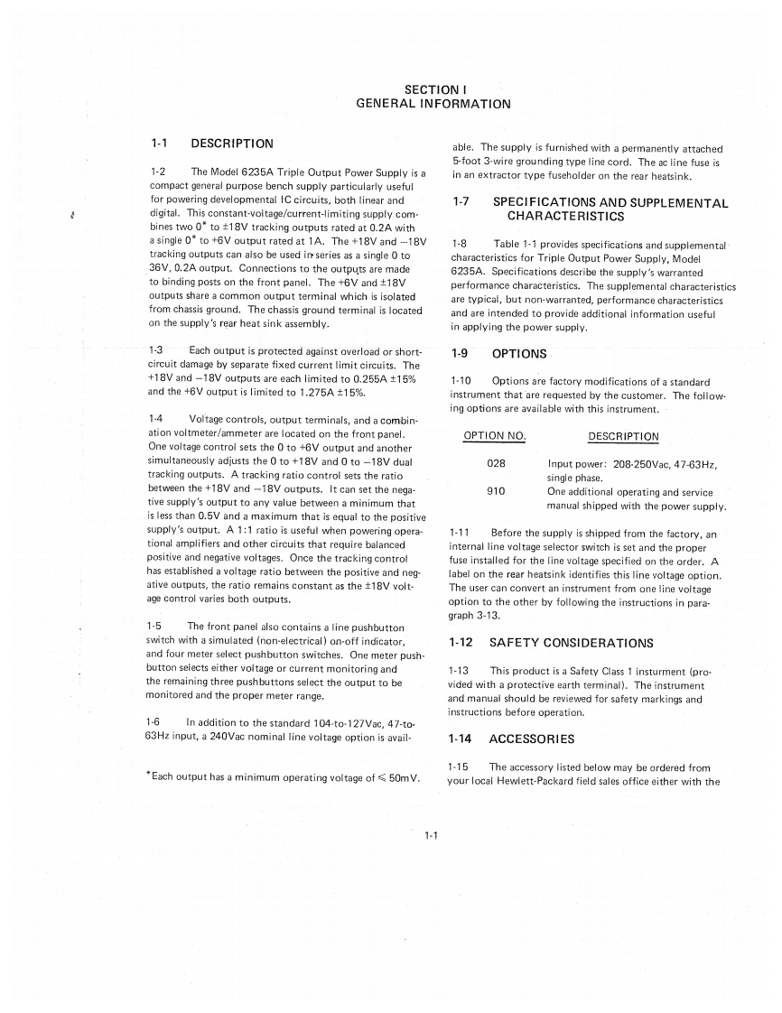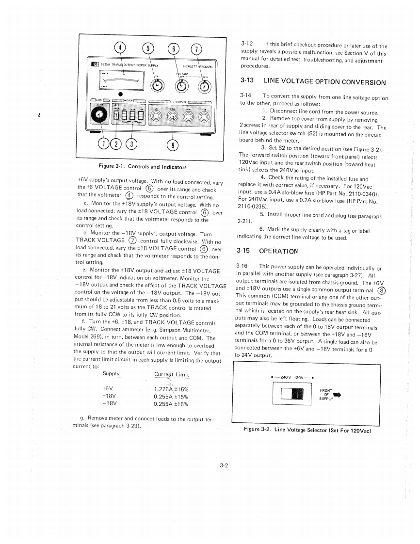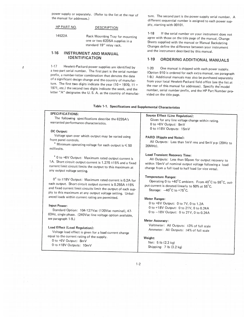 TRIPLE OUTPUTPOWER SUPPLYMODEL 6235AOPERATING AND SERVICE MANUALFOR SERIALS 1752A-00101 AND ABOVEFor Serials above 1752A-00101,a change page may be included.HP Part No.06235-90001Printed:January,1978Microfiche Part No.06235-90002