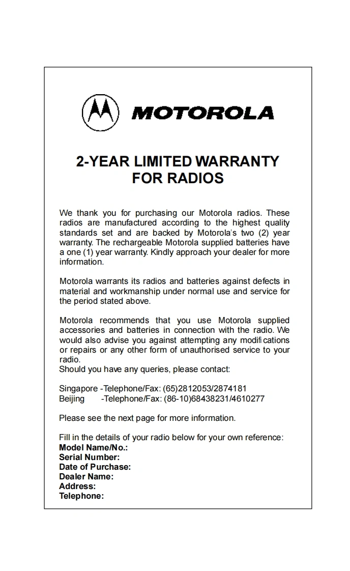 GP300_UserManual用户使用说明书手册指南找手册网22天前发布关注私信0.55MB47页023GP300_UserManual用户使用说明书手册指南此内容为付费资源,请付费后查看¥19¥21黄金会员免费钻石会员免费登录购买付费资源 第1页 / 共47页 第2页 / 共47页 第3页 / 共47页 第4页 / 共47页 第5页 / 共47页 第6页 / 共47页 第7页 / 共47页 第8页 / 共47页 第9页 / 共47页 第10页 / 共47页 试读已结束,还剩37页,您可下载完整版后进行离线阅读 THE END摩托罗拉 文本预览 GP300Portable RadiosOperating Instructions四LAb300MOTOR880888o88心MOTOROLA 查看更多 收起部分 喜欢就支持一下吧收藏