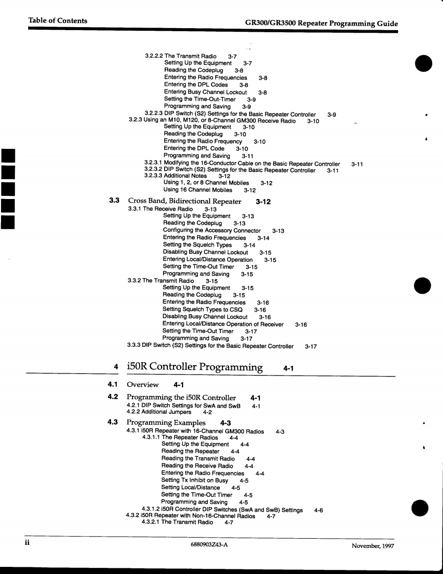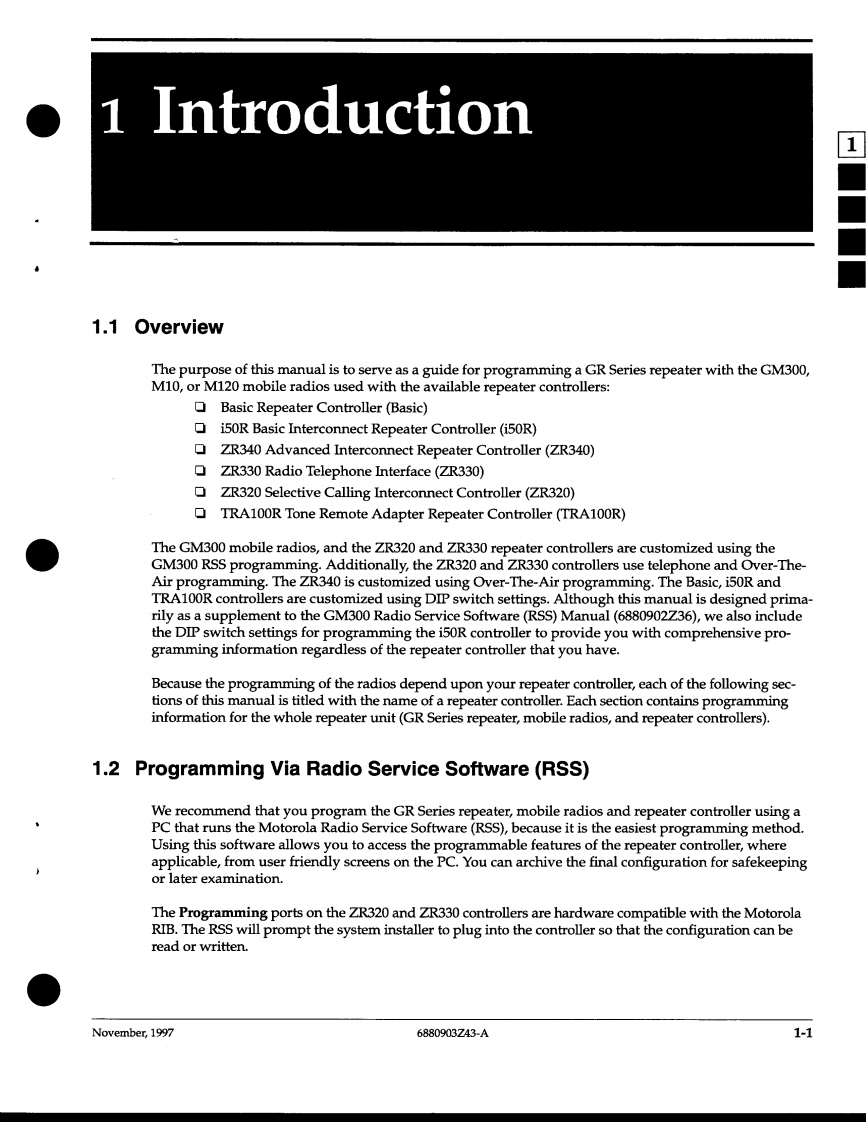 MOTOROLARadius GR300/GR500Repeater Stations and ControllersSupplement to GM300 RSS Manual(6880902Z36)Includes all programming information for:Includes all programming information for:Motorola Basic ControllerMotorola Basic Controller(R*I*C*K).Instrument /ssociates i5OR and TRA100RZetron ZR320,ZR330,and ZR340ControllersInstrument Associates i50R and TRA100RTHIS MANUAL HAS BEENRadiuyDISCONTINUED6880903Z43-ARadio Products GroupOctober,1997