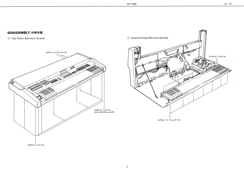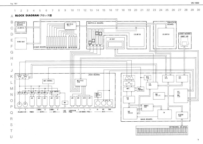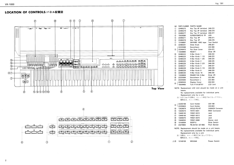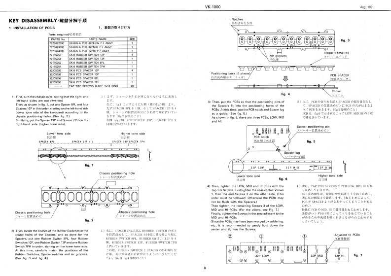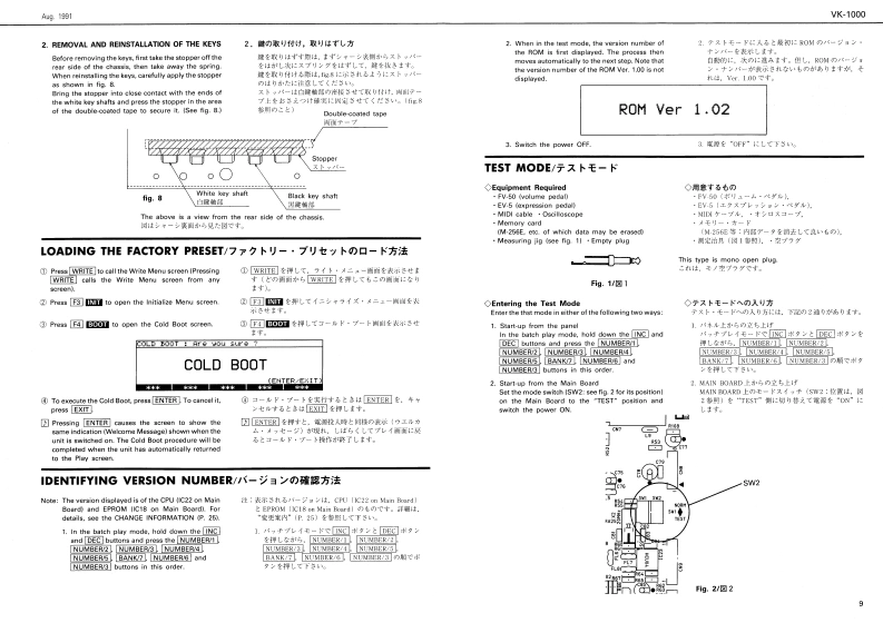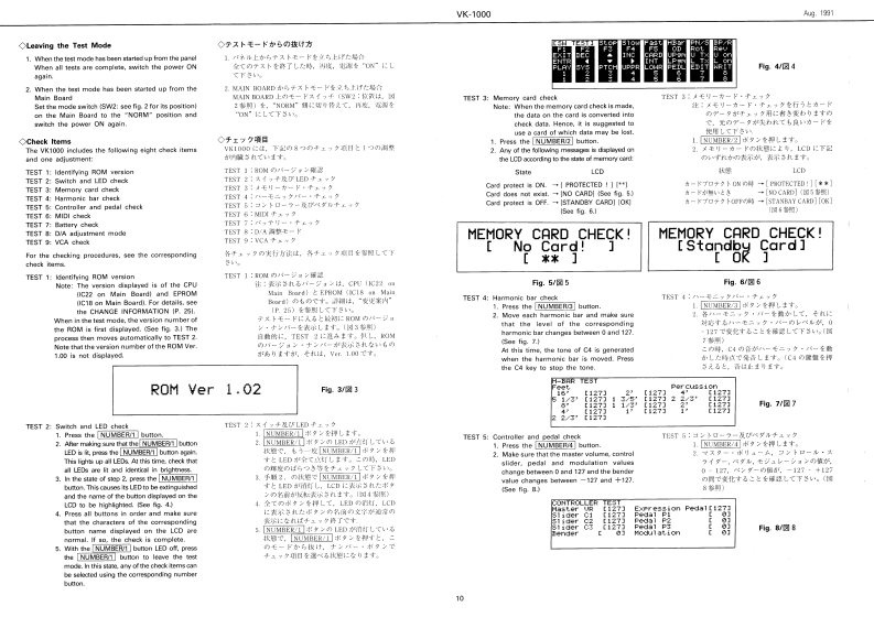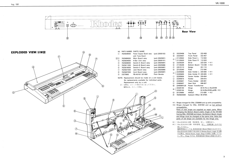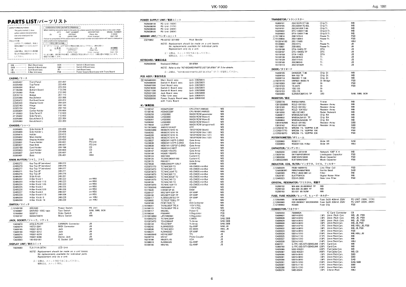 Ag.1图VK-1000RhodesSERVICE NOTESVK-1000First EditionRhodes ORGANTABLE OF CONTENTS目次PageSPEC1 FICATIONS/仕模SPECIFICATIONS....仕OKeyboard75 Keys.E 1o G.with VeloetyLOCATION OF CONTROLS/5来配置回4444一4@8o同nd sourceu3特A5h6n6Ex风ODED VEW…分解回4门写叠++4444444444一444444444444444444444444444414OMemory capatynmalH Parchau队0CKD以GRAM4 AA11C401111100111111口y☒Memory Card IM-254 Patchas月汽月T写1T44444444444444404440411401141年111t9=☑)天卡1OLCD Dsplay-a0¥det backit LCDKEYBOARD PARTS LEST..C0a绿tmLwmn,KFY DSASSEMBLY键粒异解手朝一一…8,9Dlune:max.8 Kaya on prcussios:nermalLOADING THE FACTORY PRESETIDENTIFYING VERSION NUMBER式一罗男之,手上/一00播明方法aa好nable ped1:0价的时·5127川TEST MODEfasignble p6df2:0m时.5127升DATA SAVELOAD-..子-0在-7/D-卡…11w134 asignoble p6ds3:0m时.5127升ADJUSTMENT SPECIRCATIONS-DA ADJUSTMENT·同发仕样“D,A根…1323W1280W.24MMAIN BOARDMAIN BOARD-1415125552011HmSWITCH A BOARDSWITCH-A BOARD…1649-7160W1 x 20-1/21D0 x 4-12IHI inchesCARD BOARDCARD BOARD…16OWeighe220g/80SWITCH C BOARDSWITCH.C BOARD…160Ac就的相结一=Owner'e Manudl Set (loanege)26045611H-BAR UNIT ASS'YH-BAR UNIT ASSY17Owner'e Manwal Set (Englishl269M5I2SWITCH-B BOWRDTB4-R月年题可门4444444-119AC Cord IDetac由h限有0JACK BOARD282100WDC016J01CK BOARD:23496117POWER SUPPLY BOARD ASS'YPOWER SUPPLY BOARD ASSY11VUc-704J01川:1143a112FDWITH TRANS BOARDWITH TRANS DOARD277W摆C28[00:114391]FD240Wt1EJ7G0-02345510x-76ABPL0W-7A8SY1一5K-行6A037PL0W-了AY--…23,SK-876-APCB 2P MID P.7 ASS'Y*0*SK-8T6-APCB 32P MO P-7 ASSY…23,24240WAC415-.00:I3432g14f0SK37港AP℃B12PH州P7AS8Y-*4=gK-87总-A812p相p.7Ag8Y--一…23.2Aud o Cable (PJ-1MICHANGE INFORMATIONRS-ED IStaedlTROUBLESHOOTING.--....-h号7儿少3一子f5一…一-…26,27M-256E (Mamory Cord28作+110081eteo0a电oneC DATA一C于一yDP.2R6R.FS SU (Pedal SwileNSTAND RS-80R8-8030EV5/10 (Expression PedatPK5 (Dynemie MD PedaDRoland17059613Prined in Jap的aGE0tCRm1