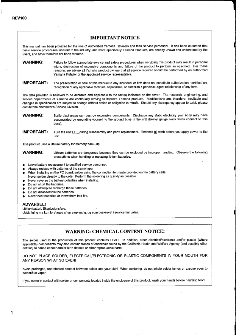 DIGITAL REVERBERATOR灵三/1DDSERVICE MANUAL●YAMAHA長Y9P●■CONTENTS(目次)SPECIFICA0S橘aE阑…3PANEL LAYOUT(Uバ礻儿T予卜)BLOCK DIAGRAM(ブ口y夕ダ亻T分与4).CIRCUIT BOARD LAYOUT(1二y卜レ亻予卜)5DIMENSIONS(寸法☒)..5DISASSEMBLY PROCEDURE(分解手順A)6LSI PIN DESCRIPTION(LSI端子機能表)4.8IC BLOCK DIAGRAM(C口y夕☒)10CIRCUIT BOARDS(一卜基板☒).11INSPECTIONS(検查仕樣)…..14/17TEST PROGRAM(于7K于75A)15/18ERROR MESSAGES(工ラ-Xy乜-)...16/19MIDI DATA FORMAT (MIDI子-夕7才-マy卜)20MIDI IMPLEMENTATION CHART........21OVERALL CIRCUIT DIAGRAM.......................22PARTS LISTYAMAHA CORP.PA011256HAMAMATSU.JAPAN19941210-248002.7K-891 Printed in Japan '94.12