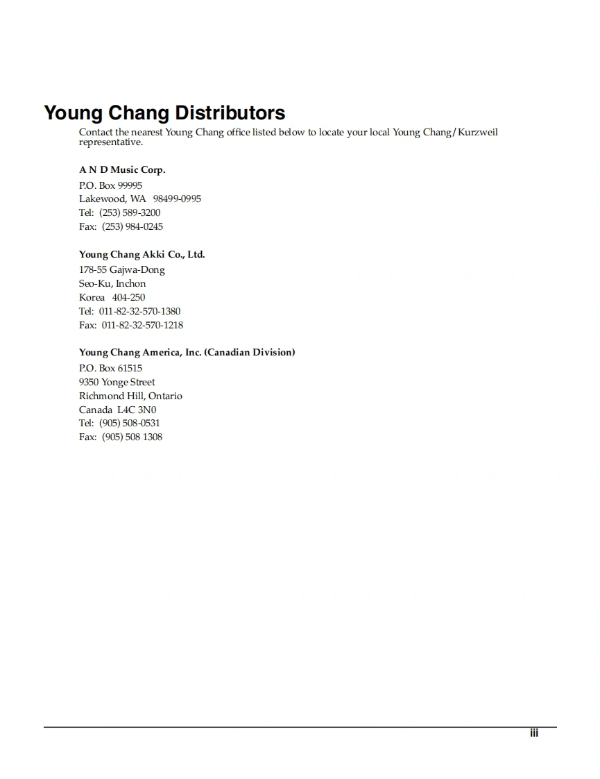 PC2 SeriesService ManualKURZWEILmngieSyatin2004 All rights reserved.Kurzweil is a product line of Young Chang Co.;Kurzweil is atrademark of Young Chang Co.All other products and brand names are trademarks orregistered trademarks of their respective companies.Product features and specificationsare subject to change without notice.Part Number:910395 Rev.A
