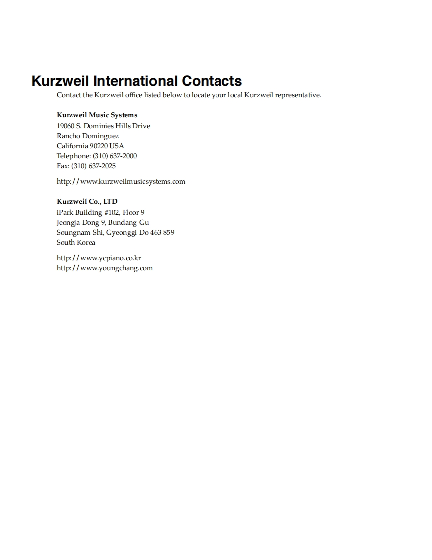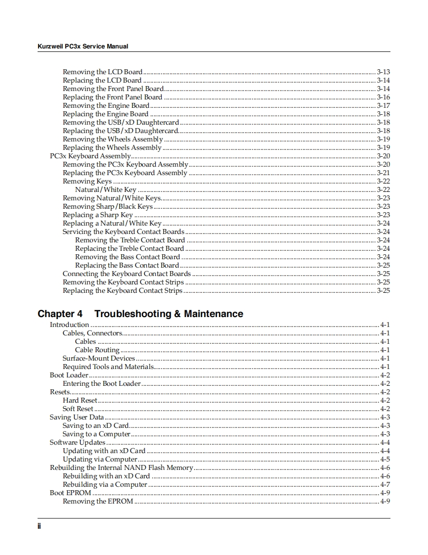 PC3xService ManualKURZWEILImteSioton2008 All rights reserved.Kurzweil is a product line of Young Chang Co.,Ltd.Young Chang,Kurzweil,and PC3R are trademarks of Young Chang Co.,Ltd.All other products and brandnames are trademarks or registered trademarks of their respective companies.Product features andspecifications are subject to change without notice.Part Number:910515-001 Ver.1.0