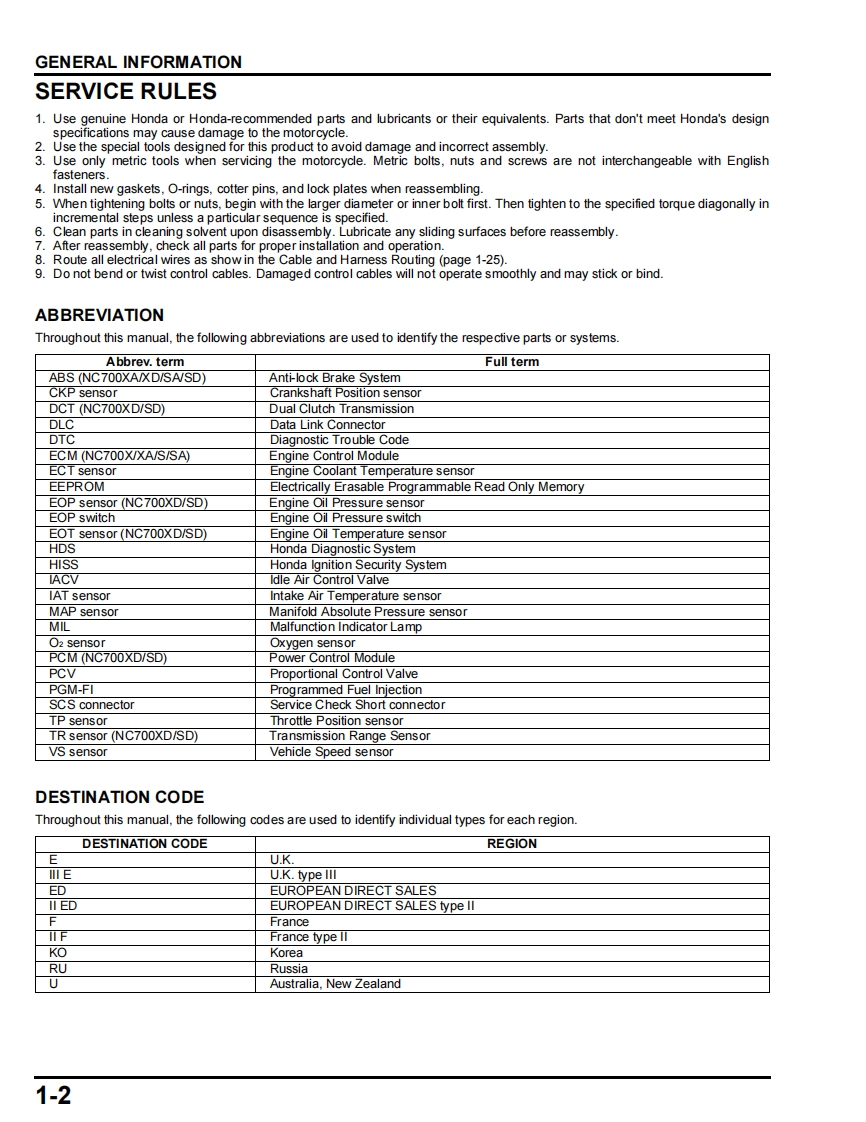 HOW TO USE THIS MANUALA Few Words About SafetyService InformationThe service and repair information contained in this manual is intended for use by qualified,professional technicians.Attemptingservice or repairs without the proper training,tools,and equipment could cause injury to you or others.It could also damage thevehicle or create an unsafe condition.This manual describes the proper methods and procedures for performing service,maintenance and repairs.Some proceduresrequire the use of specially designed tools and dedicated equipment.Any person who intends to use a replacement part,serviceprocedure or a tool that is not recommended by Honda.must determine the risks to their personal safety and the safe operation ofthe vehicle.If you need to replace a part,use genuine Honda parts with the correct part number or an equivalent part.We strongly recommendthat you do not use replacement parts of inferior quality.For Your Customer's SafetyProper service and maintenance are essential to the customer's safety and the reliability of the vehicle.Any error or oversight whileservicing a vehicle can result in faulty operation,damage to the vehicle,or injury to others.AWARNINGImproper service or repairs can create an unsafecondition that can cause your customer or others tobe seriously hurt or killed.Follow the procedures and precautions in thismanual and other service materials carefully.For Your SafetyBecause this manual is intended for the professional service technician,we do not provide warnings about many basic shop safetypractices (e.g.,Hot parts-wear gloves).If you have not received shop safety training or do not feel confident about your knowledgeof safe servicing practice,we recommend that you do not attempt to perform the procedures described in this manual.Some of the most important general service safety precautions are given below.However,we cannot warn you of everyconceivable hazard that can arise in performing service and repair procedures.Only you can decide whether or not you shouldperform a given task.AWARNINGFailure to properly follow instructions andprecautions can cause you to be seriously hurt orki训led.Follow the procedures and precautions in thismanual carefully.Important Safety PrecautionsMake sure you have a clear understanding of all basic shop safety practices and that you are wearing appropriate clothing andusing safety equipment.When performing any service task,be especially careful of the following:Read all of the instructions before you begin,and make sure you have the tools,the replacement or repair parts,and the skillsrequired to perform the tasks safely and completely.Protect your eyes by using proper safety glasses,goggles or face shields any time you hammer,drill,grind,pry or work aroundpressurized air or liquids,and springs or other stored-energy components.If there is any doubt,put on eye protection.Use other protective wear when necessary,for example gloves or safety shoes.Handling hot or sharp parts can cause severeb