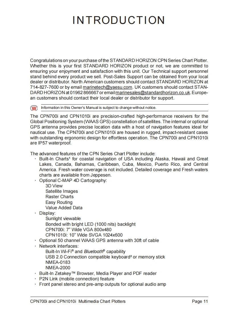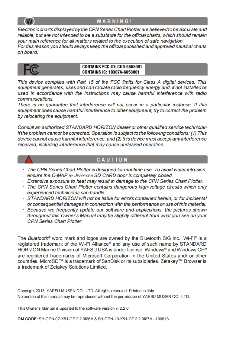 CPN1010I_CPN700I_操作说明书手册-V2.2-06-14-13找手册网21天前发布关注私信16.52MB188页045CPN1010I_CPN700I_操作说明书手册-V2.2-06-14-13此内容为付费资源,请付费后查看¥19¥21黄金会员免费钻石会员免费登录购买付费资源 第1页 / 共188页 第2页 / 共188页 第3页 / 共188页 第4页 / 共188页 第5页 / 共188页 第6页 / 共188页 第7页 / 共188页 第8页 / 共188页 第9页 / 共188页 第10页 / 共188页 试读已结束,还剩178页,您可下载完整版后进行离线阅读 THE ENDStandard-horizon 文本预览 STANDARD HORIZONNothing takes to water like Standard HorizonMULTIMEDIA GPS CHART PLOTTERSCPN10101CPN700STANDARD HORIZON0000.01991.051分01011019223wiFi书BluetoothCERTIFIEDC-MAP-by JEPPESENCompatible with C-MAP 4D ChartsOwner's Manual 查看更多 收起部分 喜欢就支持一下吧收藏
