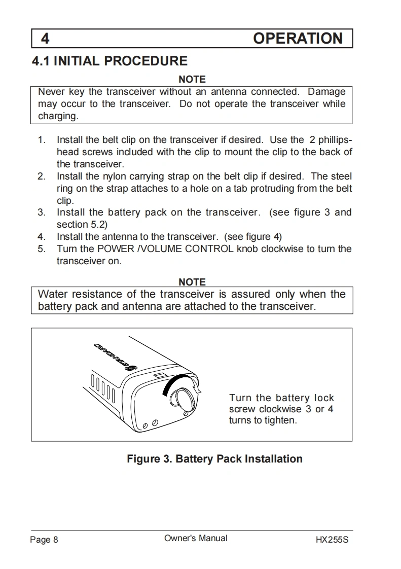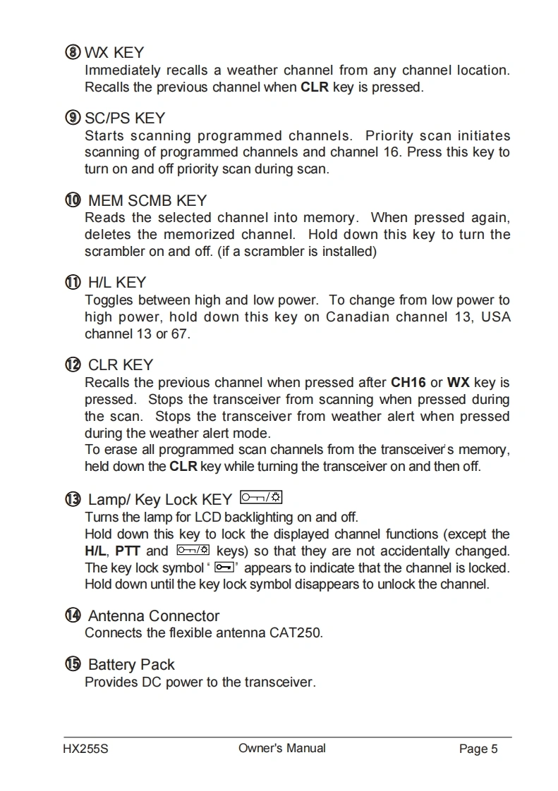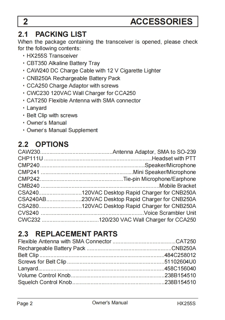 hx255s操作说明书手册找手册网20天前发布关注私信0.12MB23页039hx255s操作说明书手册此内容为付费资源,请付费后查看¥19¥21黄金会员免费钻石会员免费登录购买付费资源 第1页 / 共23页 第2页 / 共23页 第3页 / 共23页 第4页 / 共23页 第5页 / 共23页 第6页 / 共23页 第7页 / 共23页 第8页 / 共23页 第9页 / 共23页 第10页 / 共23页 试读已结束,还剩13页,您可下载完整版后进行离线阅读 THE ENDStandard-horizon 文本预览 HorizonHX255SVHF/FM MarineHandheld TransceiverOwner's ManualStandardCommunications 查看更多 收起部分 喜欢就支持一下吧收藏