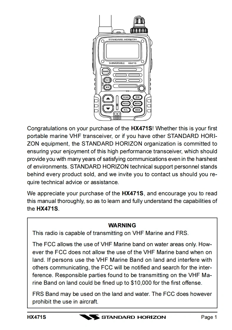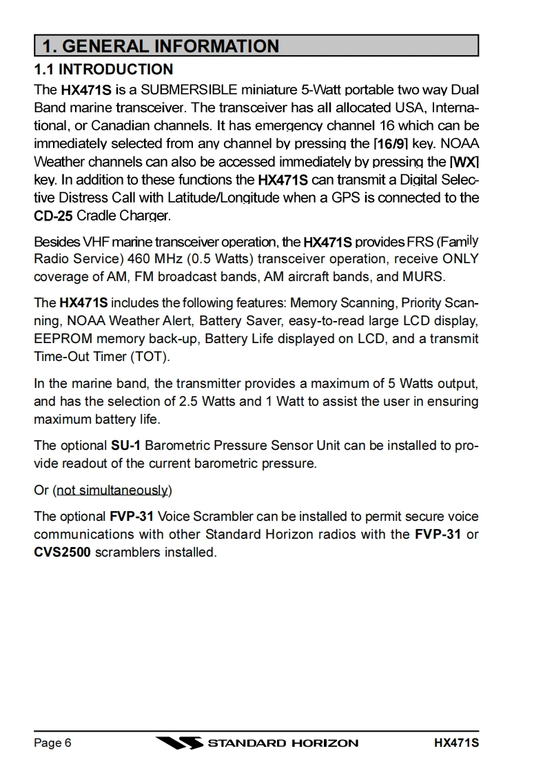 HX471S_2操作说明书手册找手册网20天前发布关注私信3.28MB60页050HX471S_2操作说明书手册此内容为付费资源,请付费后查看¥19¥21黄金会员免费钻石会员免费登录购买付费资源 第1页 / 共60页 第2页 / 共60页 第3页 / 共60页 第4页 / 共60页 第5页 / 共60页 第6页 / 共60页 第7页 / 共60页 第8页 / 共60页 第9页 / 共60页 第10页 / 共60页 试读已结束,还剩50页,您可下载完整版后进行离线阅读 THE ENDStandard-horizon 文本预览 STANDARD HORIZONHX471SSubmersible Multi Band Marine PortableOwner's ManualSTANDARD HORIZONSUBMERSIBLE HX471SBAND16/9WXSCANDWPRESETMENUH/L 查看更多 收起部分 喜欢就支持一下吧收藏