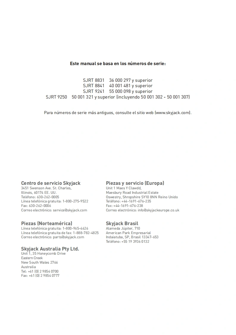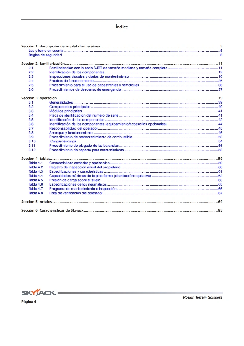 Manual-operador-SJ9250RT操作与日常维护手册找手册网18小时前发布关注私信12.07MB88页035Manual-operador-SJ9250RT操作与日常维护手册此内容为付费资源,请付费后查看¥29¥31黄金会员免费钻石会员免费立即购买您当前未登录!建议登陆后购买,可保存购买订单付费资源 第1页 / 共88页 第2页 / 共88页 第3页 / 共88页 第4页 / 共88页 第5页 / 共88页 第6页 / 共88页 第7页 / 共88页 第8页 / 共88页 第9页 / 共88页 第10页 / 共88页 试读已结束,还剩78页,您可下载完整版后进行离线阅读 THE ENDJCB/鼎力/诺力/Skyjack 文本预览 SJ8841RTSKYACKSKYACKt9t09:90卡1SKYACK6t95095图MANUAL DE FUNCIONAMIENTO (CE]ROUGH TERRAIN SCISSORSMODELOS SJ8831 RT SJ8841 RT SJ9241 RT SJ9250 RT171007AG-B Mayo2018SKYACK 查看更多 收起部分 喜欢就支持一下吧收藏