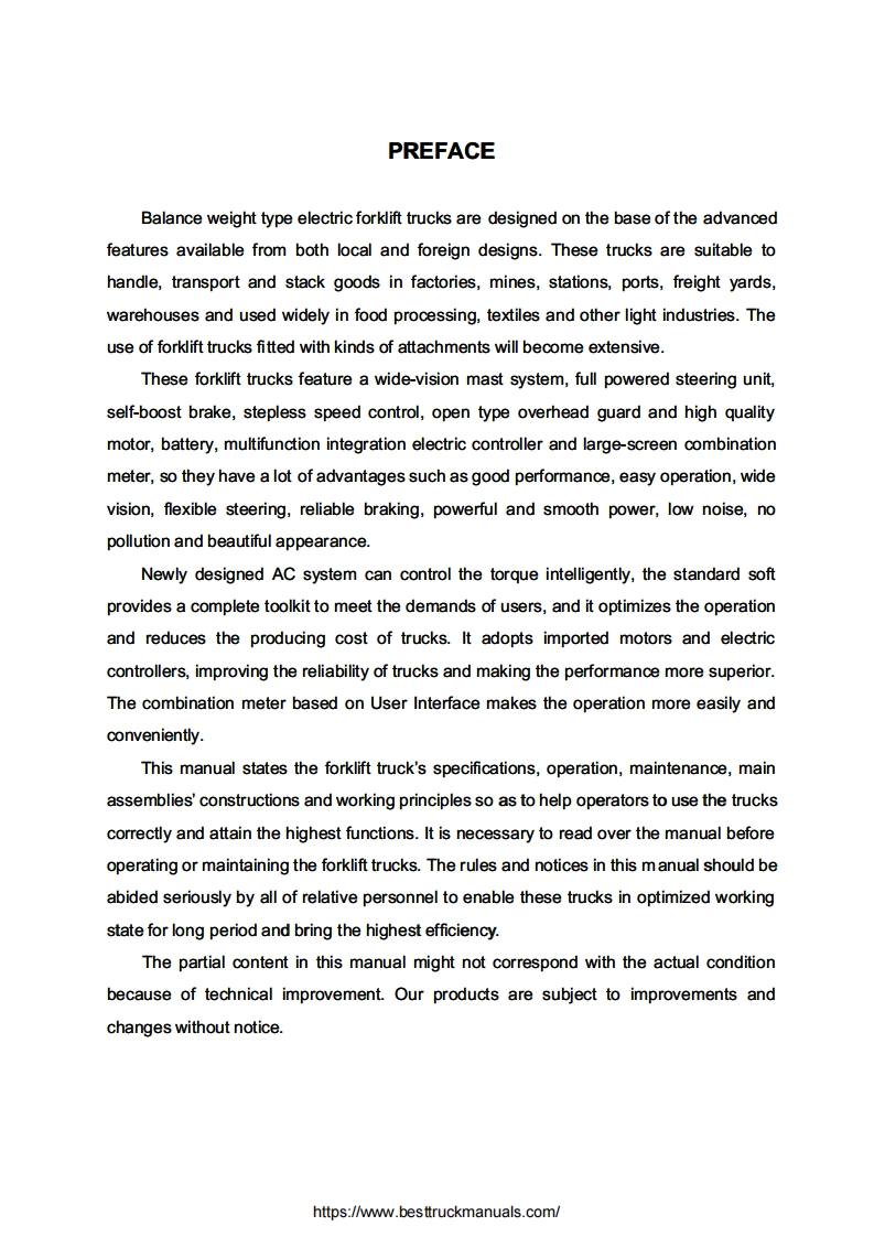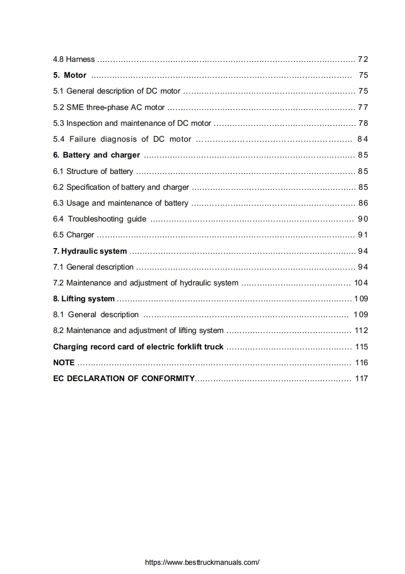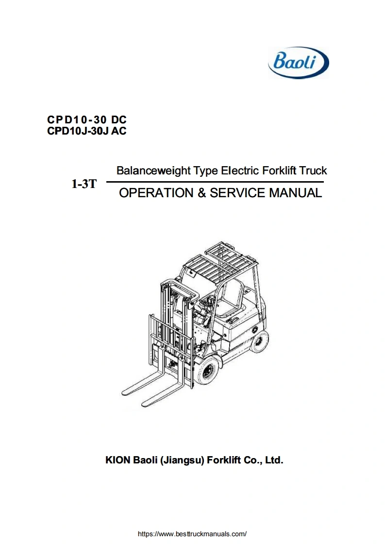Baoli-CPD-10-30-Electric-Forklift-Truck-Operator—Service-Manual维修维护手册-PDF找手册网18小时前发布关注私信5.02MB124页022Baoli-CPD-10-30-Electric-Forklift-Truck-Operator—Service-Manual维修维护手册-PDF此内容为付费资源,请付费后查看¥29¥31黄金会员免费钻石会员免费立即购买您当前未登录!建议登陆后购买,可保存购买订单付费资源 第1页 / 共124页 第2页 / 共124页 第3页 / 共124页 第4页 / 共124页 第5页 / 共124页 第6页 / 共124页 第7页 / 共124页 第8页 / 共124页 第9页 / 共124页 第10页 / 共124页 试读已结束,还剩114页,您可下载完整版后进行离线阅读 THE END杭州叉车/Dino/Bao-li叉车 文本预览 OriginalBaoliinstructionsOPERATION SERVICE MANUAL1-3TBalance Weight TypeElectric Forklift TruckCPD10-30DCCPD10J-30JACKION Baoli (Jiangsu)Forklift Co.,Ltd.https://www.besttruckmanuals.com/ 查看更多 收起部分 喜欢就支持一下吧收藏