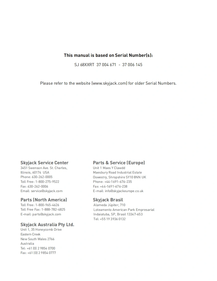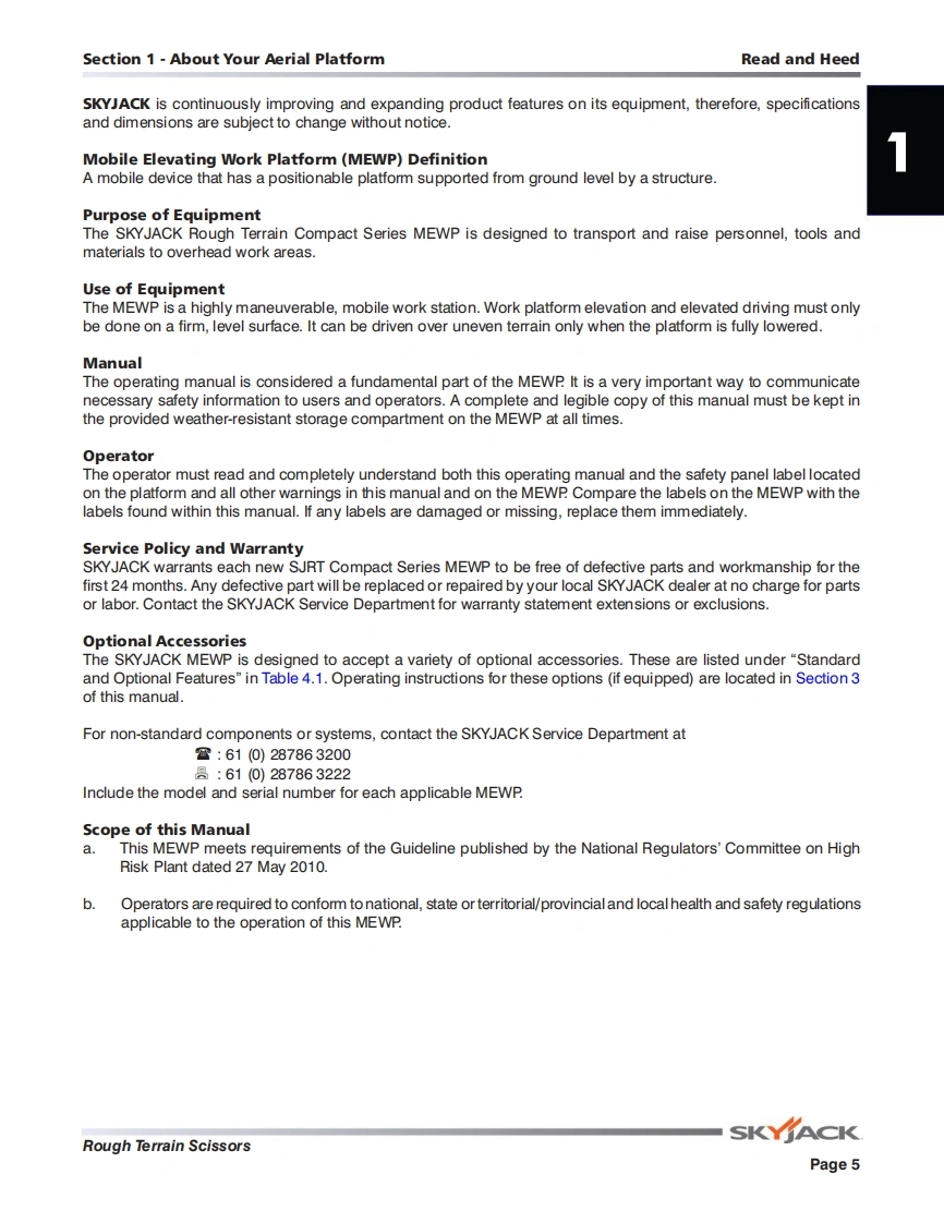 Skyjack-6826RT-Operations-Manual操作与维护保养说明书手册找手册网18小时前发布关注私信8.25MB92页024Skyjack-6826RT-Operations-Manual操作与维护保养说明书手册此内容为付费资源,请付费后查看¥29¥31黄金会员免费钻石会员免费立即购买您当前未登录!建议登陆后购买,可保存购买订单付费资源 第1页 / 共92页 第2页 / 共92页 第3页 / 共92页 第4页 / 共92页 第5页 / 共92页 第6页 / 共92页 第7页 / 共92页 第8页 / 共92页 第9页 / 共92页 第10页 / 共92页 试读已结束,还剩82页,您可下载完整版后进行离线阅读 THE ENDJCB/鼎力/诺力/Skyjack 文本预览 SKYACK放NSJ683SKYACK●0OPERATING MANUAL (AS)ROUGH TERRAIN SCISSORSMODELS SJ6826 RT SJ6832 RT159172AC-A January 2018SKYACK 查看更多 收起部分 喜欢就支持一下吧收藏