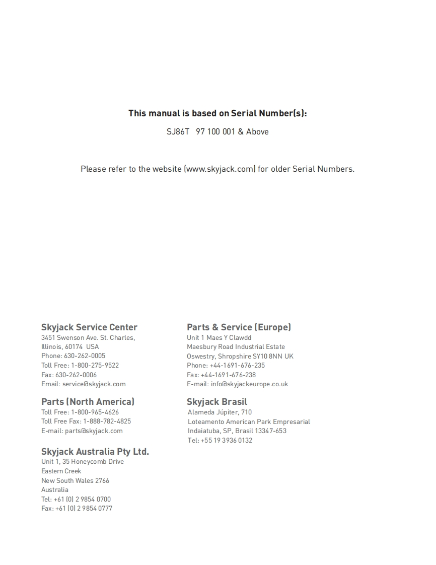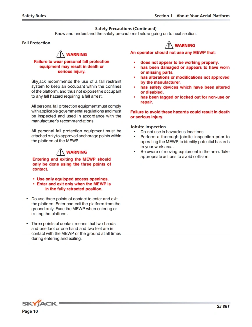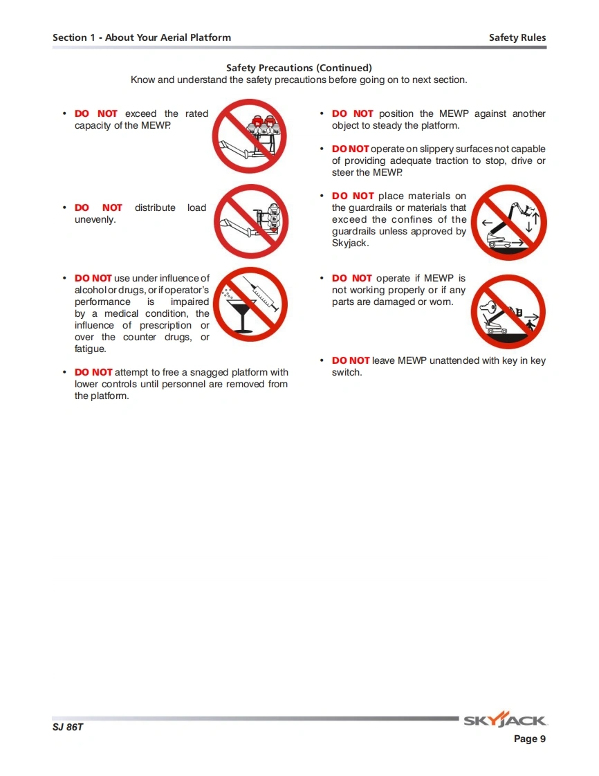 Skyjack-SJ-86T-Operations-Manual操作与维护保养说明书手册s找手册网18小时前发布关注私信8.92MB98页031Skyjack-SJ-86T-Operations-Manual操作与维护保养说明书手册s此内容为付费资源,请付费后查看¥29¥31黄金会员免费钻石会员免费立即购买您当前未登录!建议登陆后购买,可保存购买订单付费资源 第1页 / 共98页 第2页 / 共98页 第3页 / 共98页 第4页 / 共98页 第5页 / 共98页 第6页 / 共98页 第7页 / 共98页 第8页 / 共98页 第9页 / 共98页 第10页 / 共98页 试读已结束,还剩88页,您可下载完整版后进行离线阅读 THE ENDJCB/鼎力/诺力/Skyjack 文本预览 ttwOPERATING MANUAL (AS]TELESCOPIC BOOMSMODEL SJ86T169370AFA November 2018SKYACK 查看更多 收起部分 喜欢就支持一下吧收藏