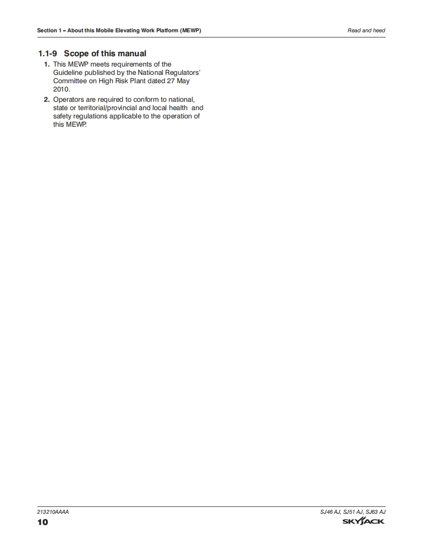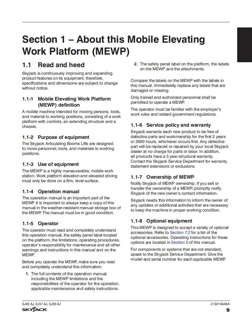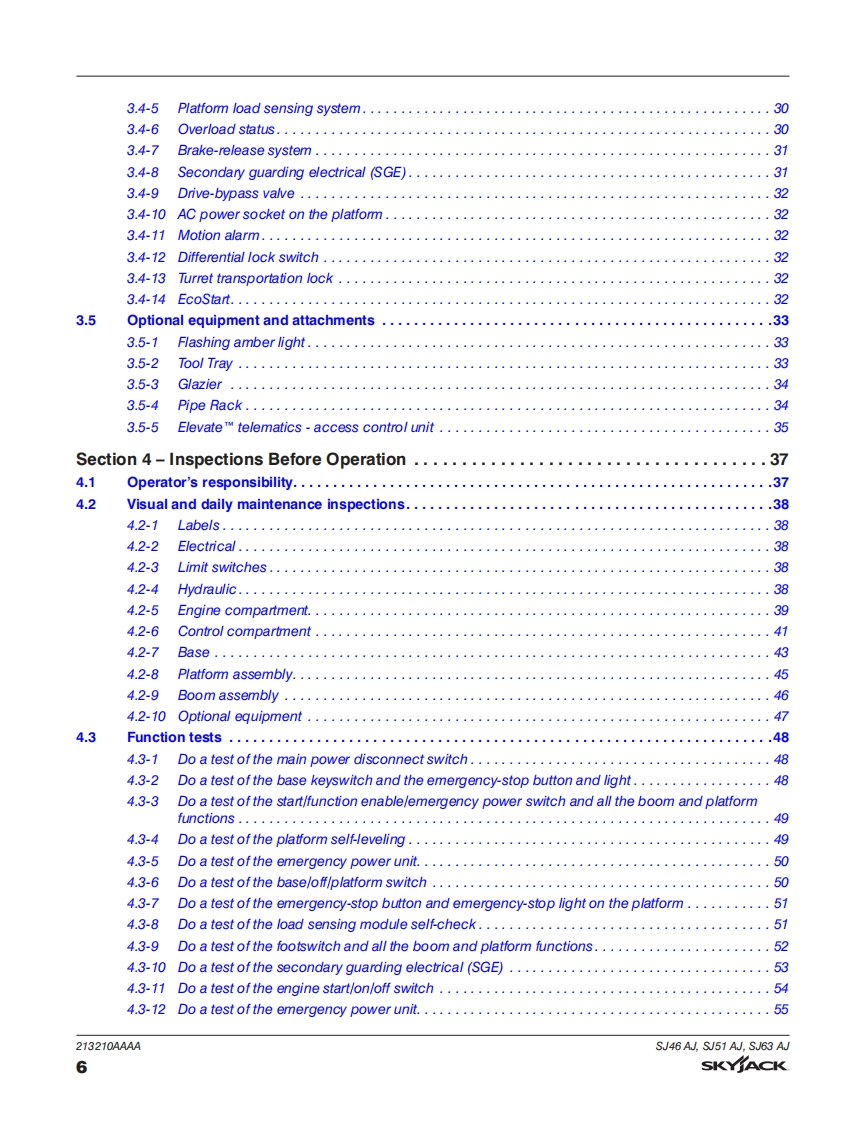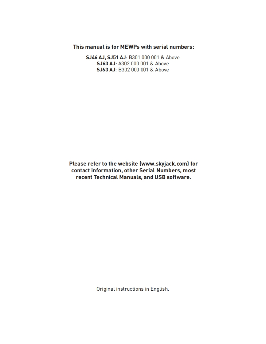 Skyjack-SJ51A-Operations-Manual操作与维护保养说明书手册找手册网18小时前发布关注私信8.20MB120页024Skyjack-SJ51A-Operations-Manual操作与维护保养说明书手册此内容为付费资源,请付费后查看¥29¥31黄金会员免费钻石会员免费立即购买您当前未登录!建议登陆后购买,可保存购买订单付费资源 第1页 / 共120页 第2页 / 共120页 第3页 / 共120页 第4页 / 共120页 第5页 / 共120页 第6页 / 共120页 第7页 / 共120页 第8页 / 共120页 第9页 / 共120页 第10页 / 共120页 试读已结束,还剩110页,您可下载完整版后进行离线阅读 THE ENDJCB/鼎力/诺力/Skyjack 文本预览 SKYACKOPERATIONMANUALSJ46 AJ,SJ51 AJ,SJ63 AJARTICULATING BOOMS213210AAAADecember 2019AS 查看更多 收起部分 喜欢就支持一下吧收藏