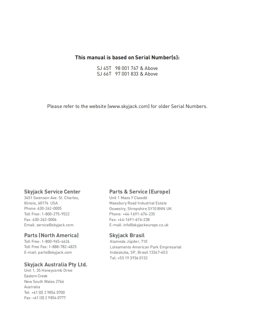 Skyjack-SJ66T-Operations-Manual操作与维护保养说明书手册找手册网18小时前发布关注私信8.16MB94页024Skyjack-SJ66T-Operations-Manual操作与维护保养说明书手册此内容为付费资源,请付费后查看¥29¥31黄金会员免费钻石会员免费立即购买您当前未登录!建议登陆后购买,可保存购买订单付费资源 第1页 / 共94页 第2页 / 共94页 第3页 / 共94页 第4页 / 共94页 第5页 / 共94页 第6页 / 共94页 第7页 / 共94页 第8页 / 共94页 第9页 / 共94页 第10页 / 共94页 试读已结束,还剩84页,您可下载完整版后进行离线阅读 THE ENDJCB/鼎力/诺力/Skyjack 文本预览 GPS阿d5SKMACKOPERATING MANUAL (AS]TELESCOPIC BOOMSMODELS SJ45T SJ66T207522ACA November 2018SK∥ACK 查看更多 收起部分 喜欢就支持一下吧收藏