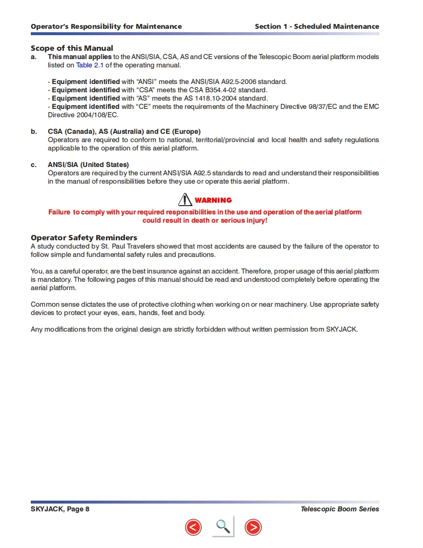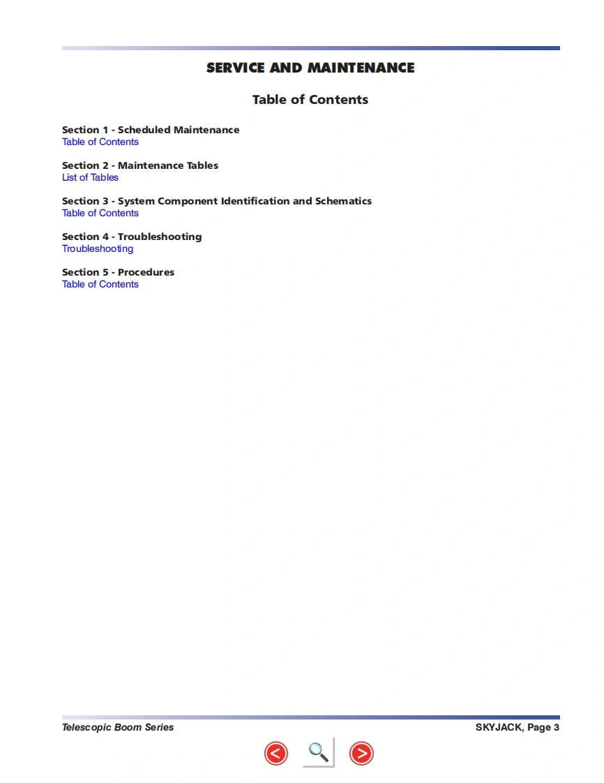 SKYJACT-SJ45T_Service_Manual维修保养手册找手册网18小时前发布关注私信25.69MB194页023SKYJACT-SJ45T_Service_Manual维修保养手册此内容为付费资源,请付费后查看¥29¥31黄金会员免费钻石会员免费立即购买您当前未登录!建议登陆后购买,可保存购买订单付费资源 第1页 / 共194页 第2页 / 共194页 第3页 / 共194页 第4页 / 共194页 第5页 / 共194页 第6页 / 共194页 第7页 / 共194页 第8页 / 共194页 第9页 / 共194页 第10页 / 共194页 试读已结束,还剩184页,您可下载完整版后进行离线阅读 THE ENDJCB/鼎力/诺力/Skyjack 文本预览 MODELS SJ 40T SJ 45TService ManualTelescopic Boom SeriesPart No.143844AE September 2010SKYACK 查看更多 收起部分 喜欢就支持一下吧收藏