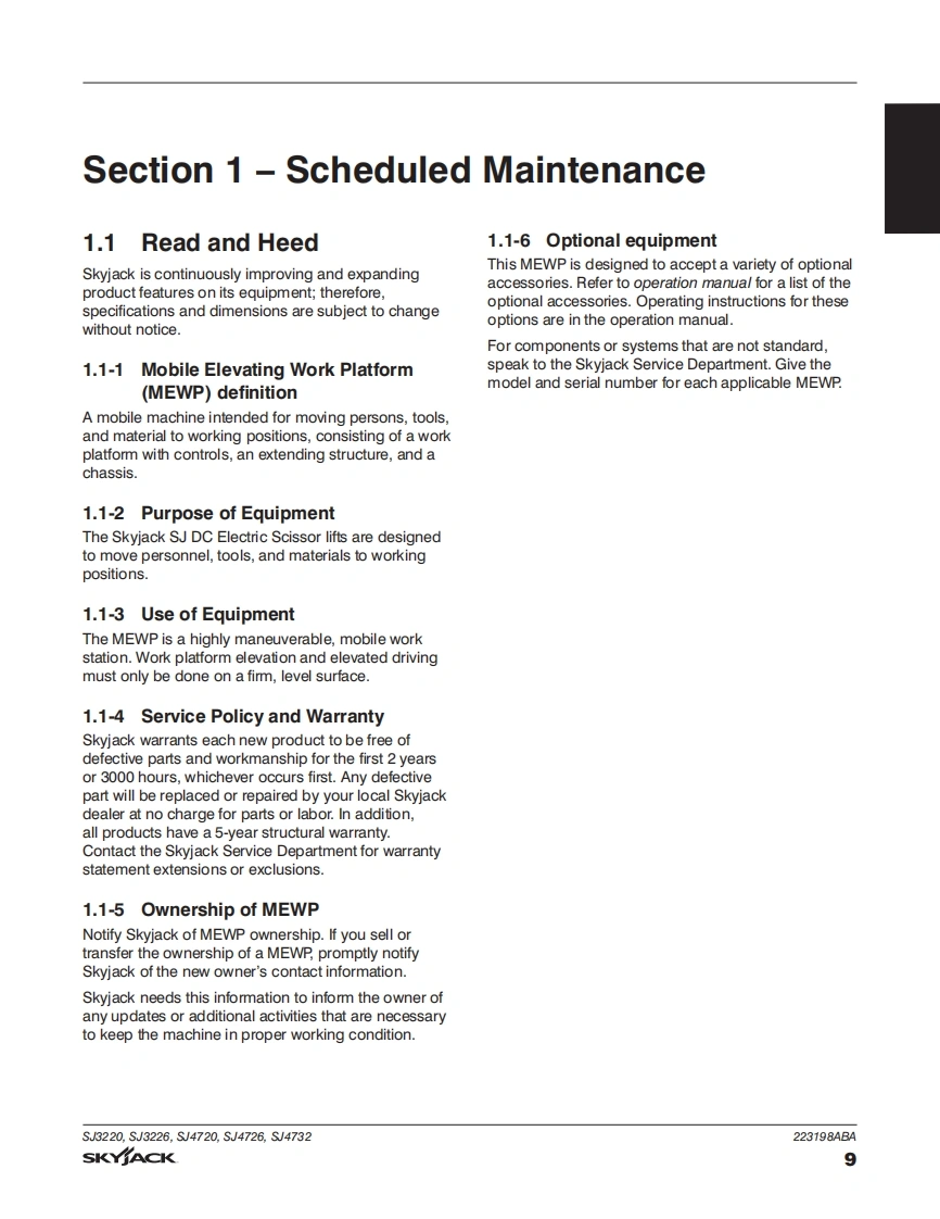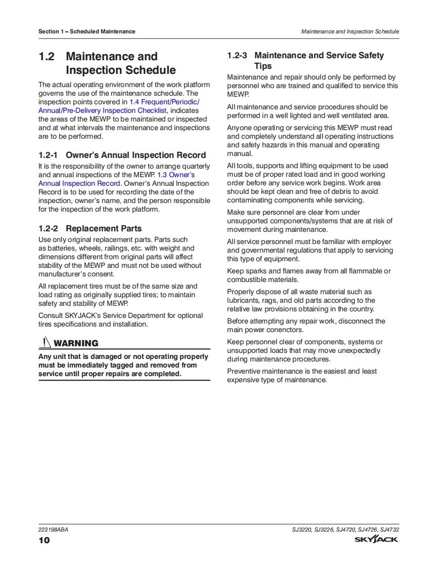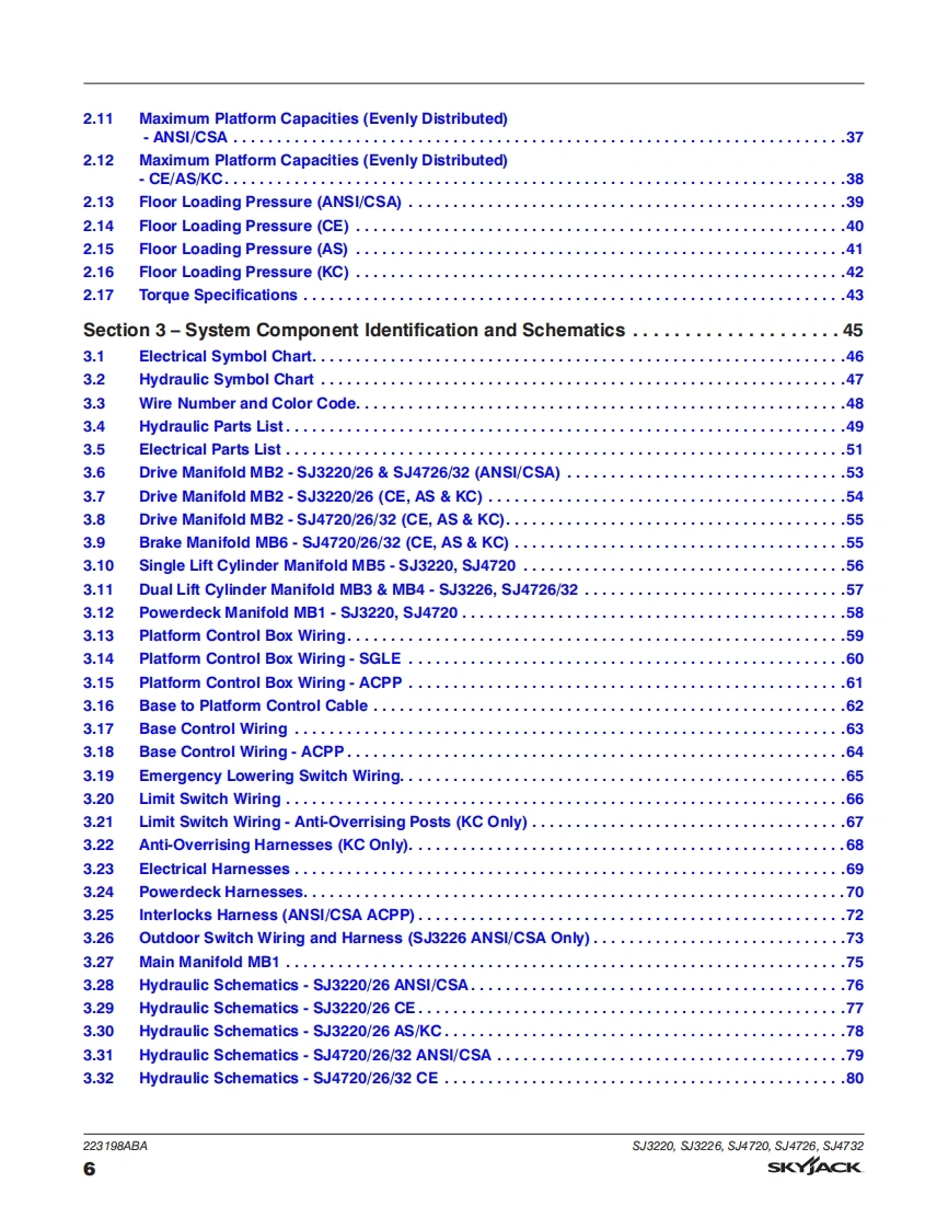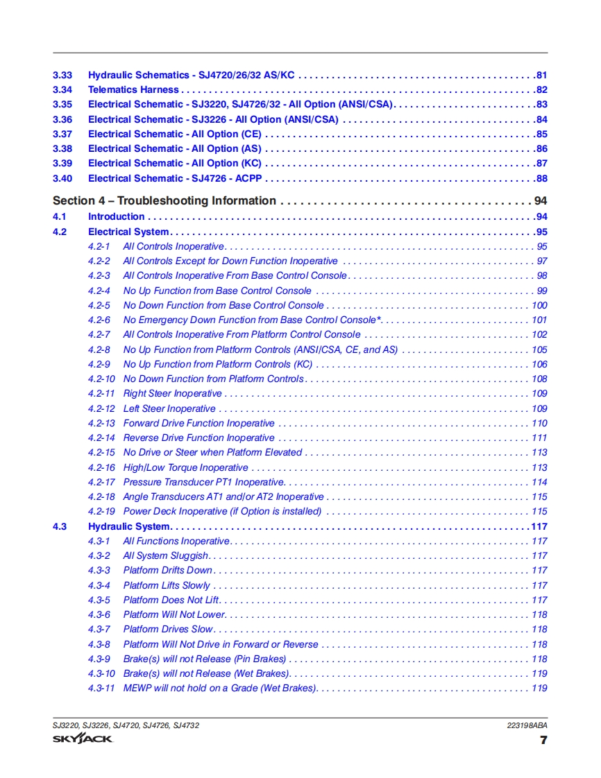 SKYJACT-SJ4732-Service-Manual维修保养说明书手册找手册网18小时前发布关注私信7.32MB177页035SKYJACT-SJ4732-Service-Manual维修保养说明书手册此内容为付费资源,请付费后查看¥29¥31黄金会员免费钻石会员免费立即购买您当前未登录!建议登陆后购买,可保存购买订单付费资源 第1页 / 共177页 第2页 / 共177页 第3页 / 共177页 第4页 / 共177页 第5页 / 共177页 第6页 / 共177页 第7页 / 共177页 第8页 / 共177页 第9页 / 共177页 第10页 / 共177页 试读已结束,还剩167页,您可下载完整版后进行离线阅读 THE ENDJCB/鼎力/诺力/Skyjack 文本预览 SKYACKSERVICEMANUALSJ3220,SJ3226,SJ4720,SJ4726,SJ4732DC ELECTRIC SCISSORS223198ABAAugust 2020©ANSI/CSA.CE.AS,KC 查看更多 收起部分 喜欢就支持一下吧收藏