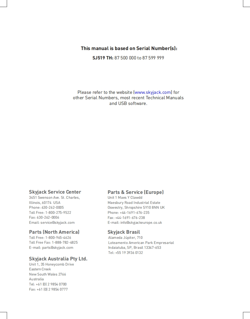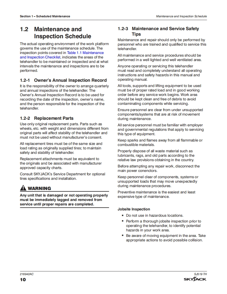 SKYJACT-SJ519TH-Service-Manual维修保养说明书手册找手册网18小时前发布关注私信8.13MB108页024SKYJACT-SJ519TH-Service-Manual维修保养说明书手册此内容为付费资源,请付费后查看¥29¥31黄金会员免费钻石会员免费立即购买您当前未登录!建议登陆后购买,可保存购买订单付费资源 第1页 / 共108页 第2页 / 共108页 第3页 / 共108页 第4页 / 共108页 第5页 / 共108页 第6页 / 共108页 第7页 / 共108页 第8页 / 共108页 第9页 / 共108页 第10页 / 共108页 试读已结束,还剩98页,您可下载完整版后进行离线阅读 THE ENDJCB/鼎力/诺力/Skyjack 文本预览 SKYACKSERVICEMANUALSJ519 THTELEHANDLERS216942ACOctober 2020ANSI 查看更多 收起部分 喜欢就支持一下吧收藏