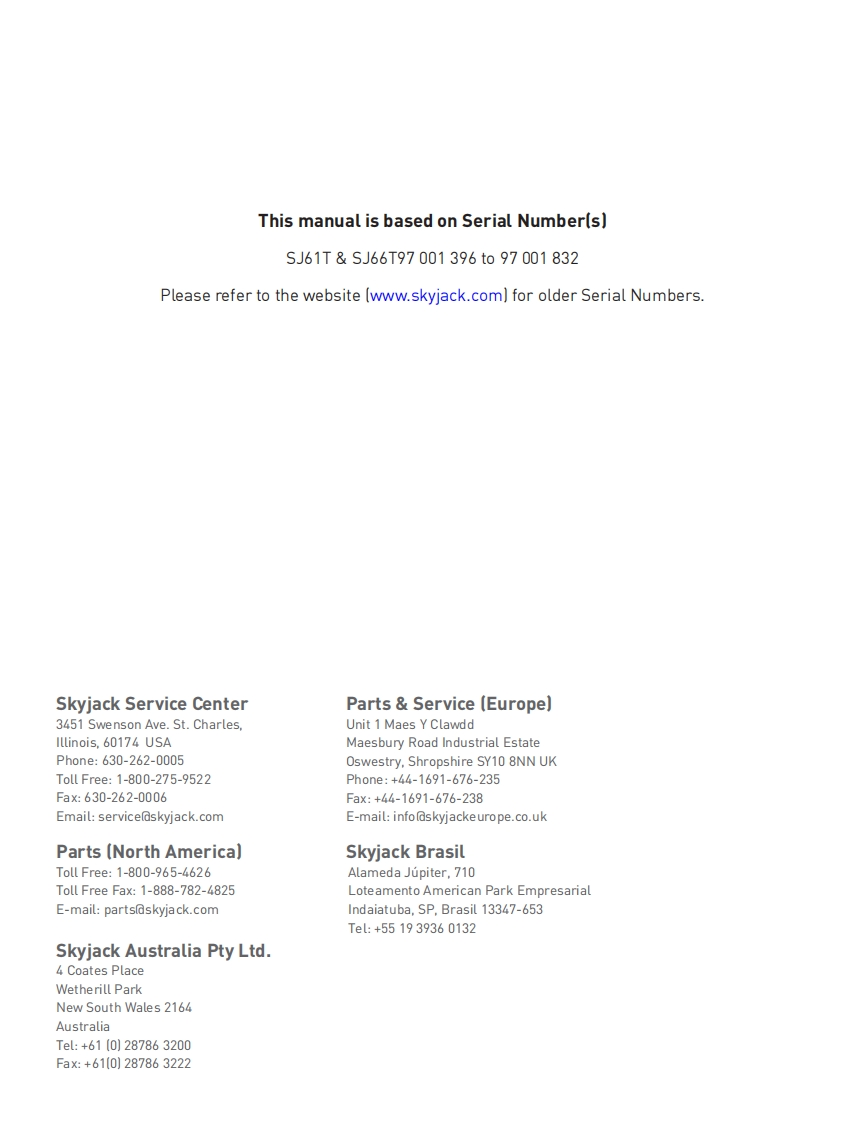 SKYJACT-SJ61T_Service_Manual维修保养手册找手册网18小时前发布关注私信26.58MB232页040SKYJACT-SJ61T_Service_Manual维修保养手册此内容为付费资源,请付费后查看¥29¥31黄金会员免费钻石会员免费立即购买您当前未登录!建议登陆后购买,可保存购买订单付费资源 第1页 / 共232页 第2页 / 共232页 第3页 / 共232页 第4页 / 共232页 第5页 / 共232页 第6页 / 共232页 第7页 / 共232页 第8页 / 共232页 第9页 / 共232页 第10页 / 共232页 试读已结束,还剩222页,您可下载完整版后进行离线阅读 THE ENDJCB/鼎力/诺力/Skyjack 文本预览 SERVICE MANUALTELESCOPIC BOOMSMODELS SJ61T SJ66T194312AE February 2017SK∥ACK 查看更多 收起部分 喜欢就支持一下吧收藏