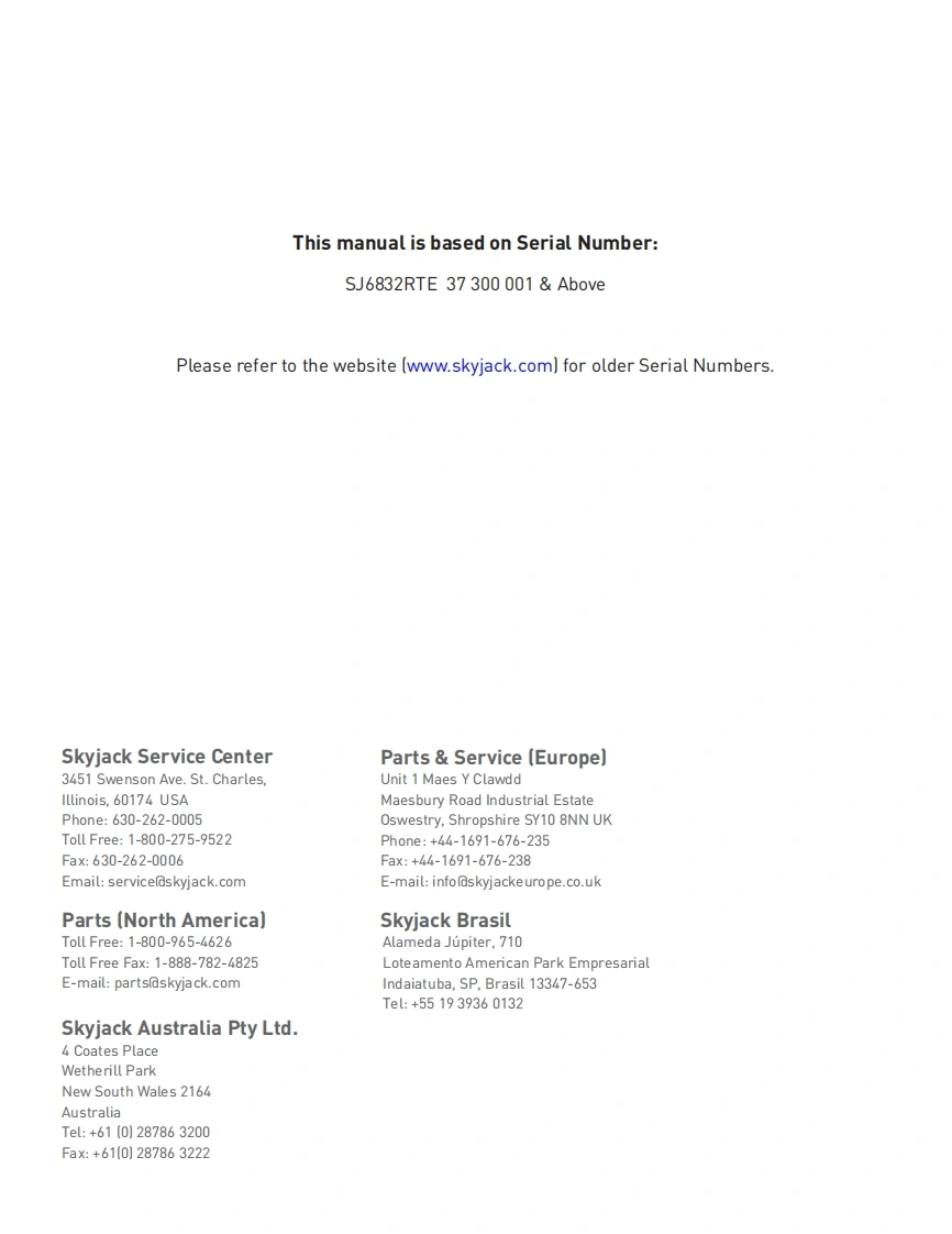SKYJACT-SJ6832RTE_Service_Manual维修保养手册找手册网18小时前发布关注私信9.43MB126页038SKYJACT-SJ6832RTE_Service_Manual维修保养手册此内容为付费资源,请付费后查看¥29¥31黄金会员免费钻石会员免费立即购买您当前未登录!建议登陆后购买,可保存购买订单付费资源 第1页 / 共126页 第2页 / 共126页 第3页 / 共126页 第4页 / 共126页 第5页 / 共126页 第6页 / 共126页 第7页 / 共126页 第8页 / 共126页 第9页 / 共126页 第10页 / 共126页 试读已结束,还剩116页,您可下载完整版后进行离线阅读 THE ENDJCB/鼎力/诺力/Skyjack 文本预览 SKYJACK证S6832证4SERVICE MANUAL (ANSI/CSA]ROUGH TERRAIN SCISSORSMODEL SJ6832 RTE167574AC December 2015SKYACK 查看更多 收起部分 喜欢就支持一下吧收藏