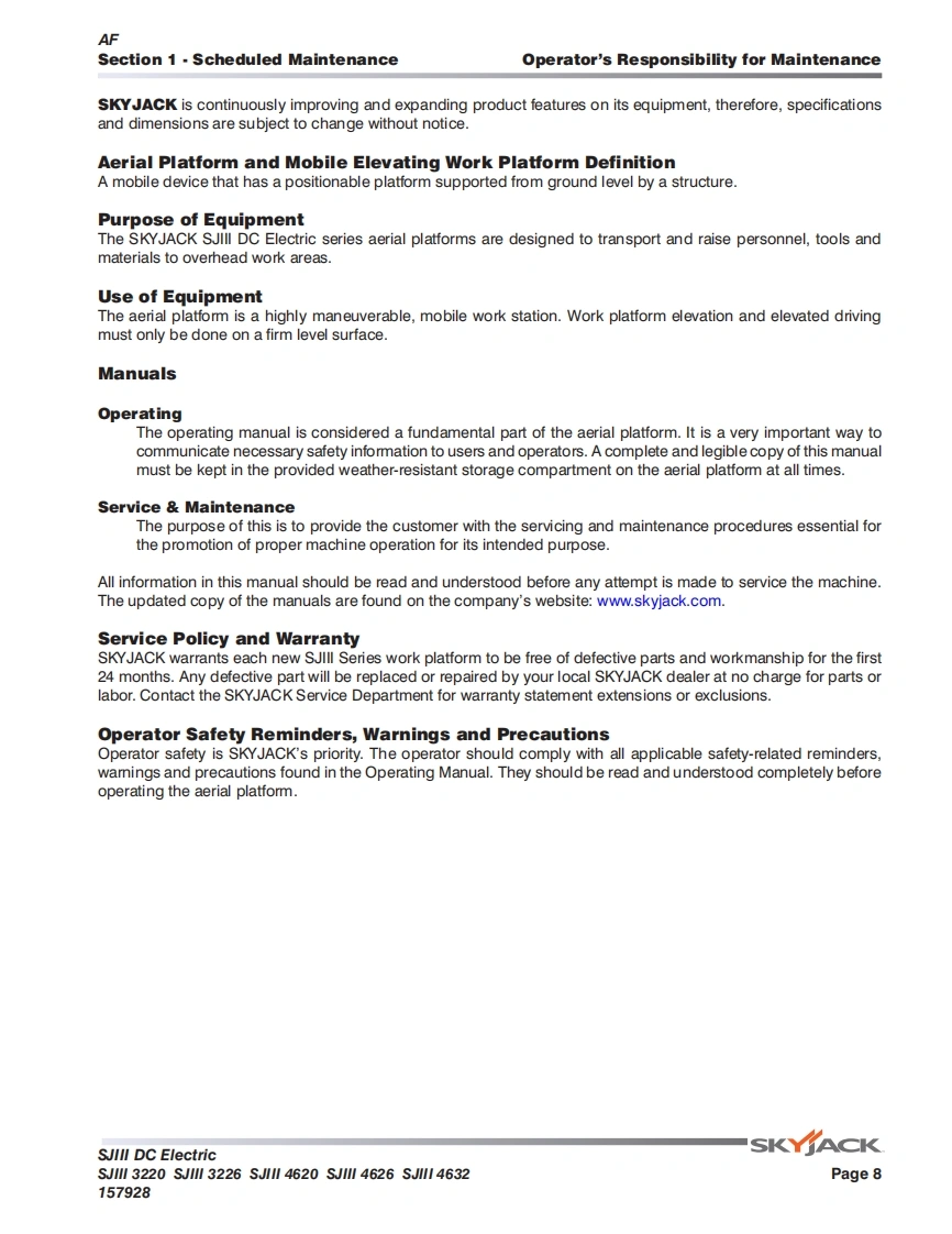 SKYACKIMPORTANTVerify if your machine is hydraulically proportional or motorcontrolled.Motor controller machines can be identified by the MC labellocated on the side of the machine or on the platform controlbox.MCFor motor controller-specific diagrams,schematics andtroubleshooting information,see Section 6-Appendix A.